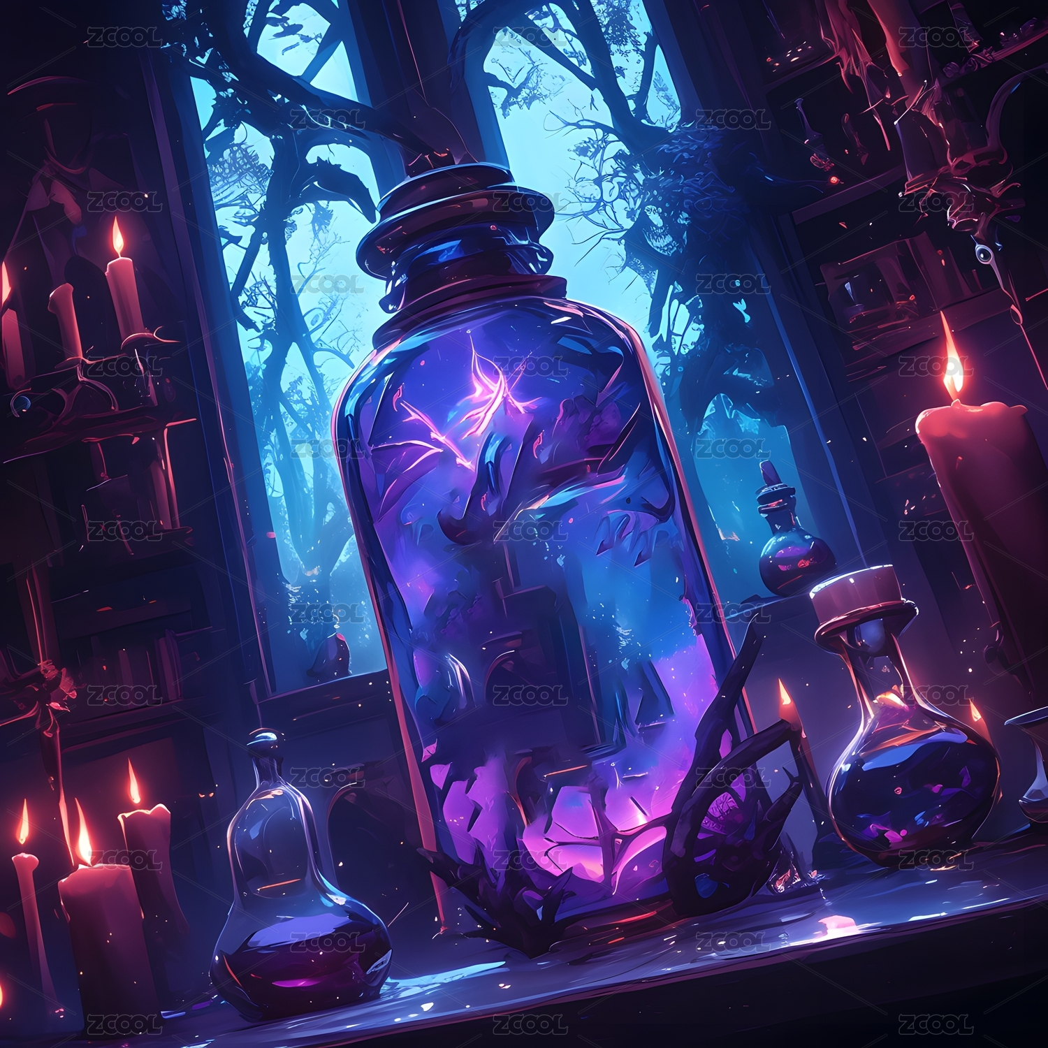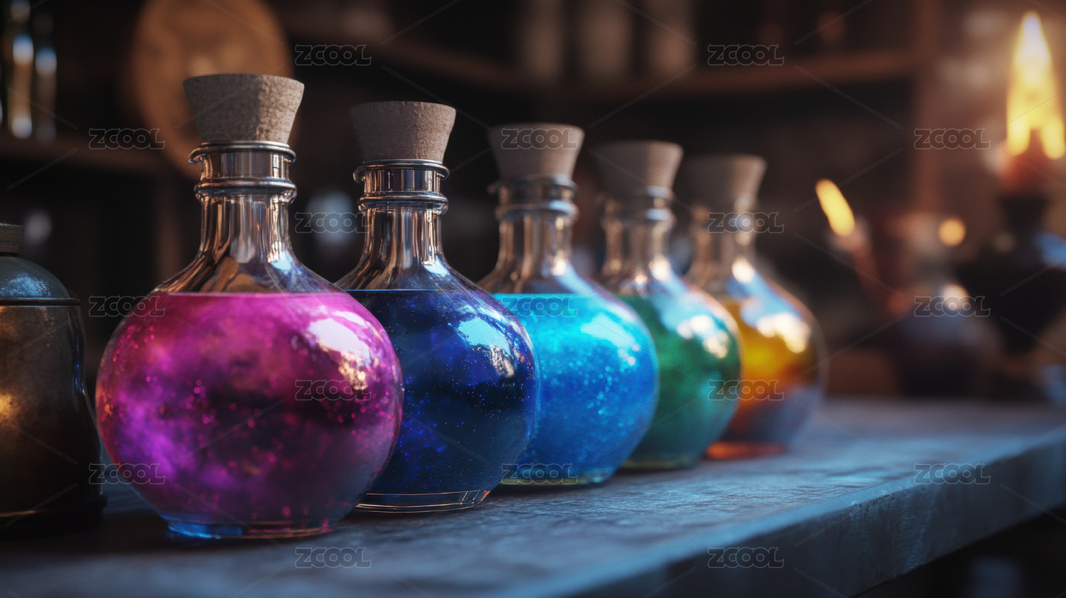 神秘的蓝色药剂瓶,闪耀着魔法光辉