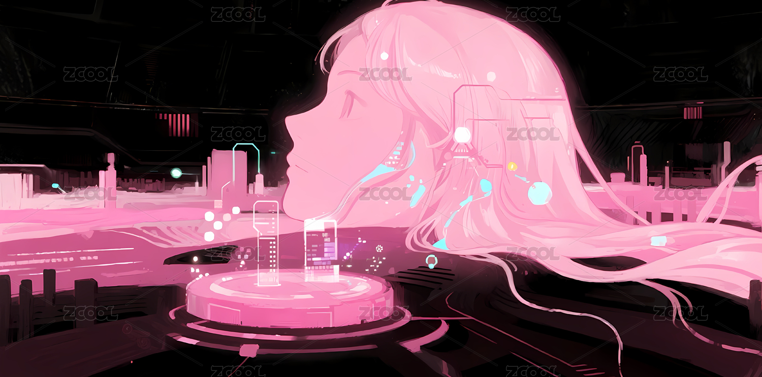 AI,壁纸,背景,插画,艺术,动漫,女孩,耳机,音乐,夜色