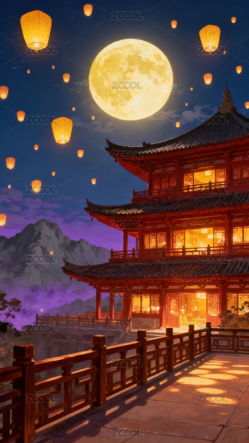 艺术,梦幻,唯美,月夜,意境,中国风,夜景,灯笼,仙境,飞舞