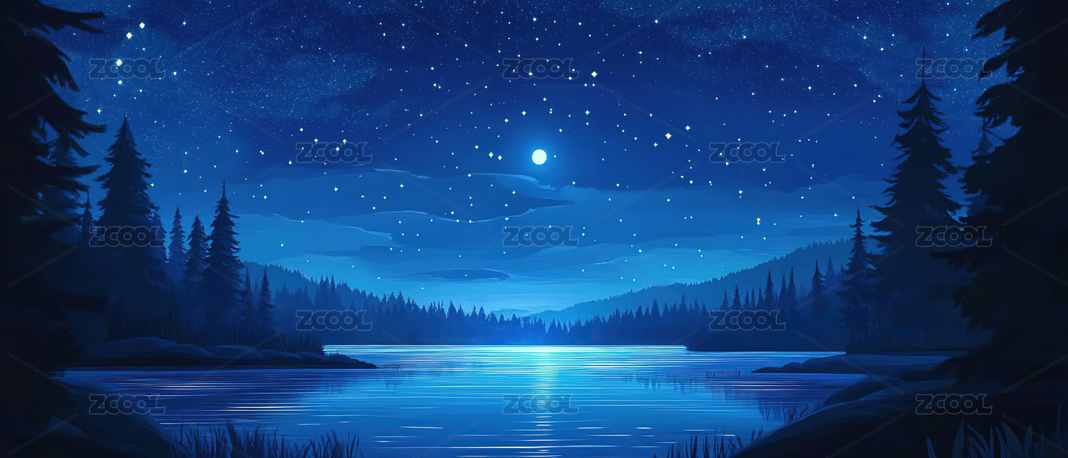 插画,AIGC,自然,宁静,背景,壁纸,梦幻,星空,湖泊,夜晚