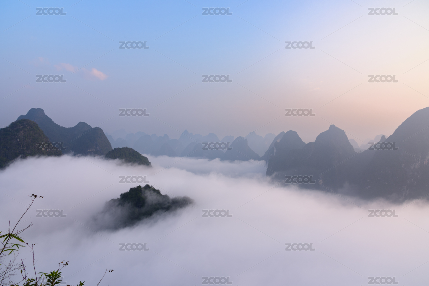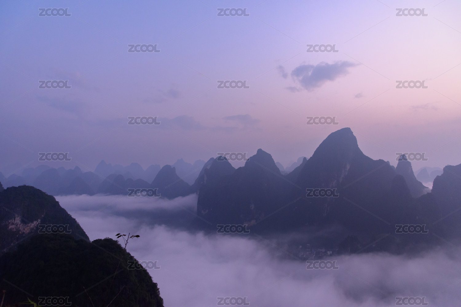 清晨桂林群山间的云海