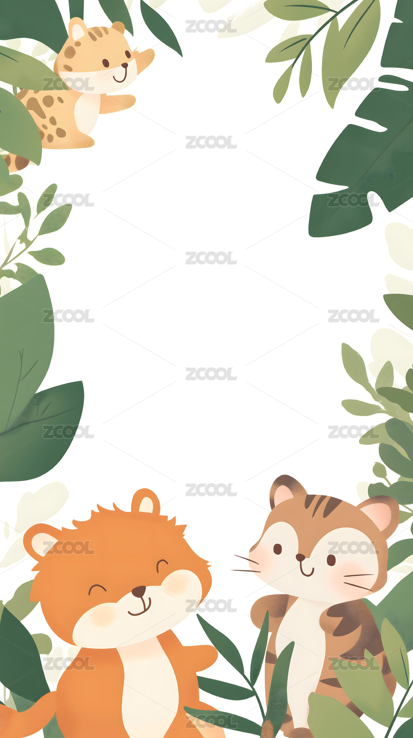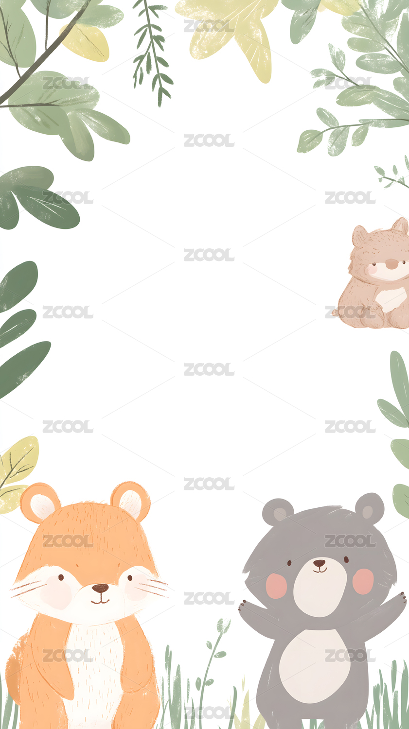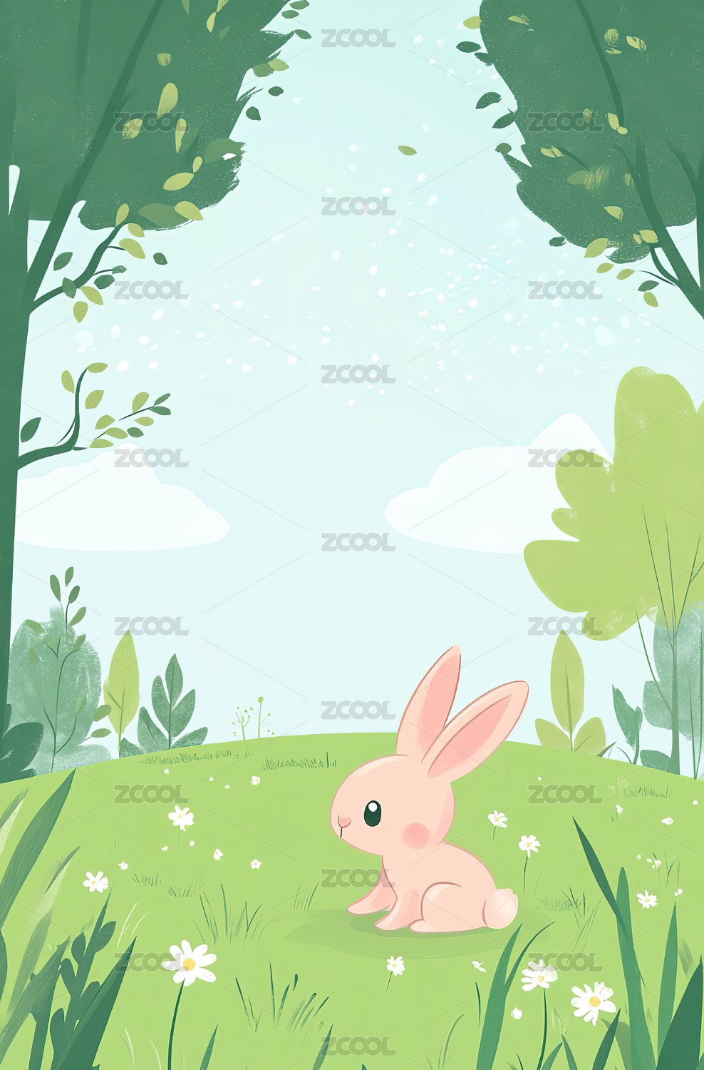 卡通,彩色,水彩,草原,动物,插画,海报背景