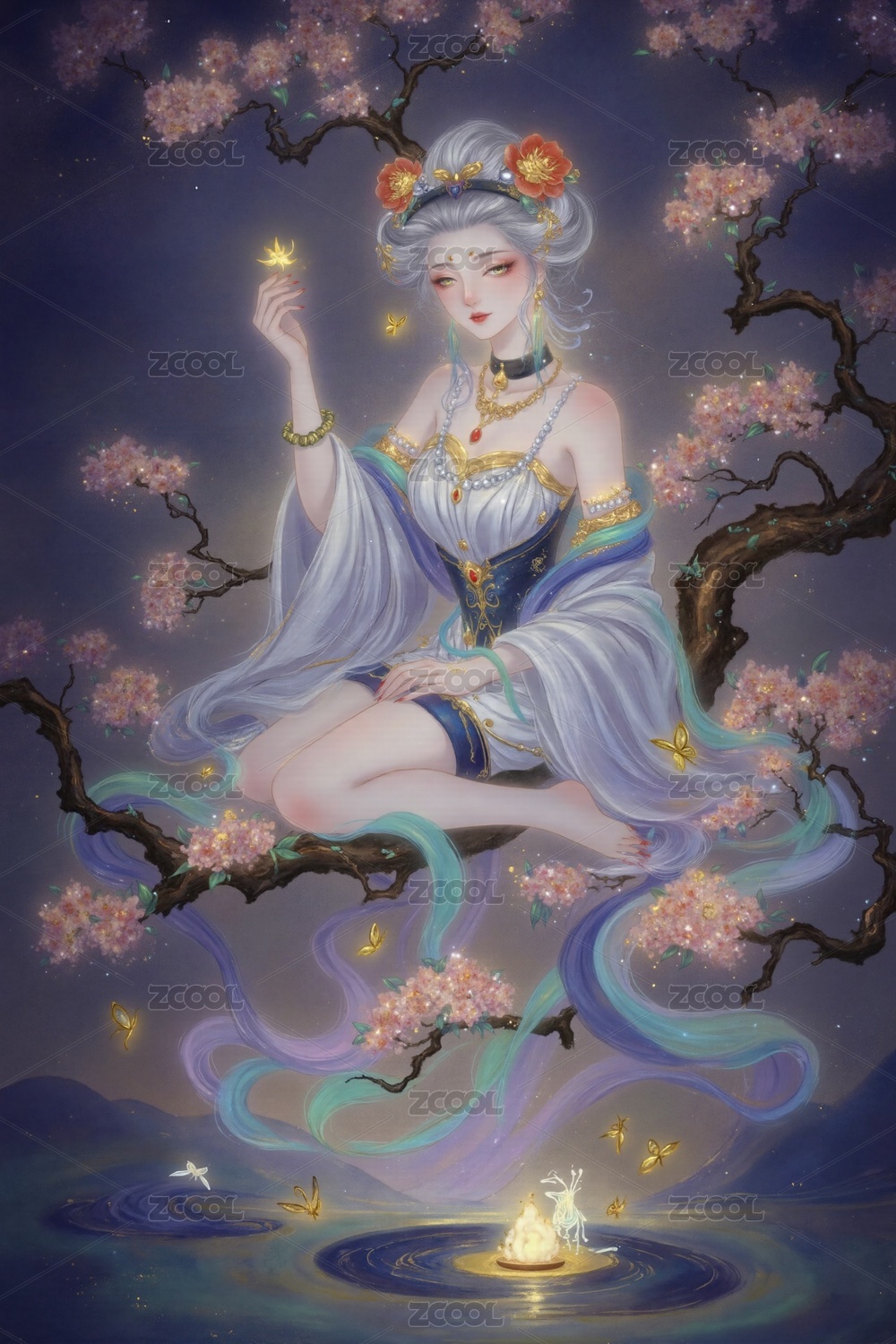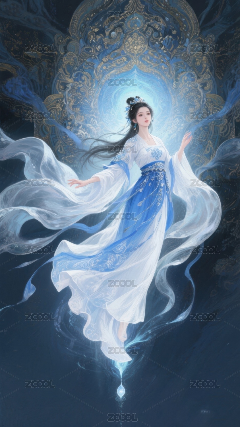 少女,蓝色,飘逸,创意,享乐,艺术,美女,佛教,中国文化,全身像