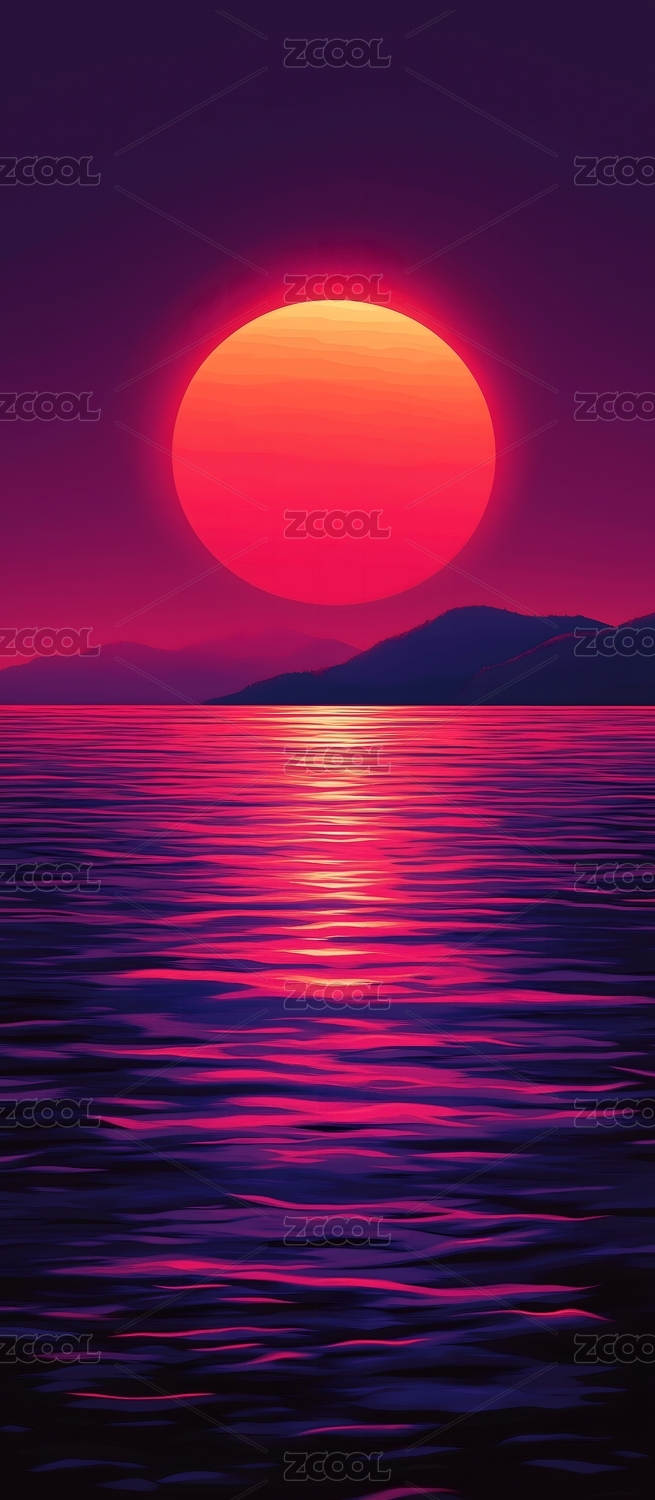 宁静夜色下的湖面红日,星光点缀的迷人景观