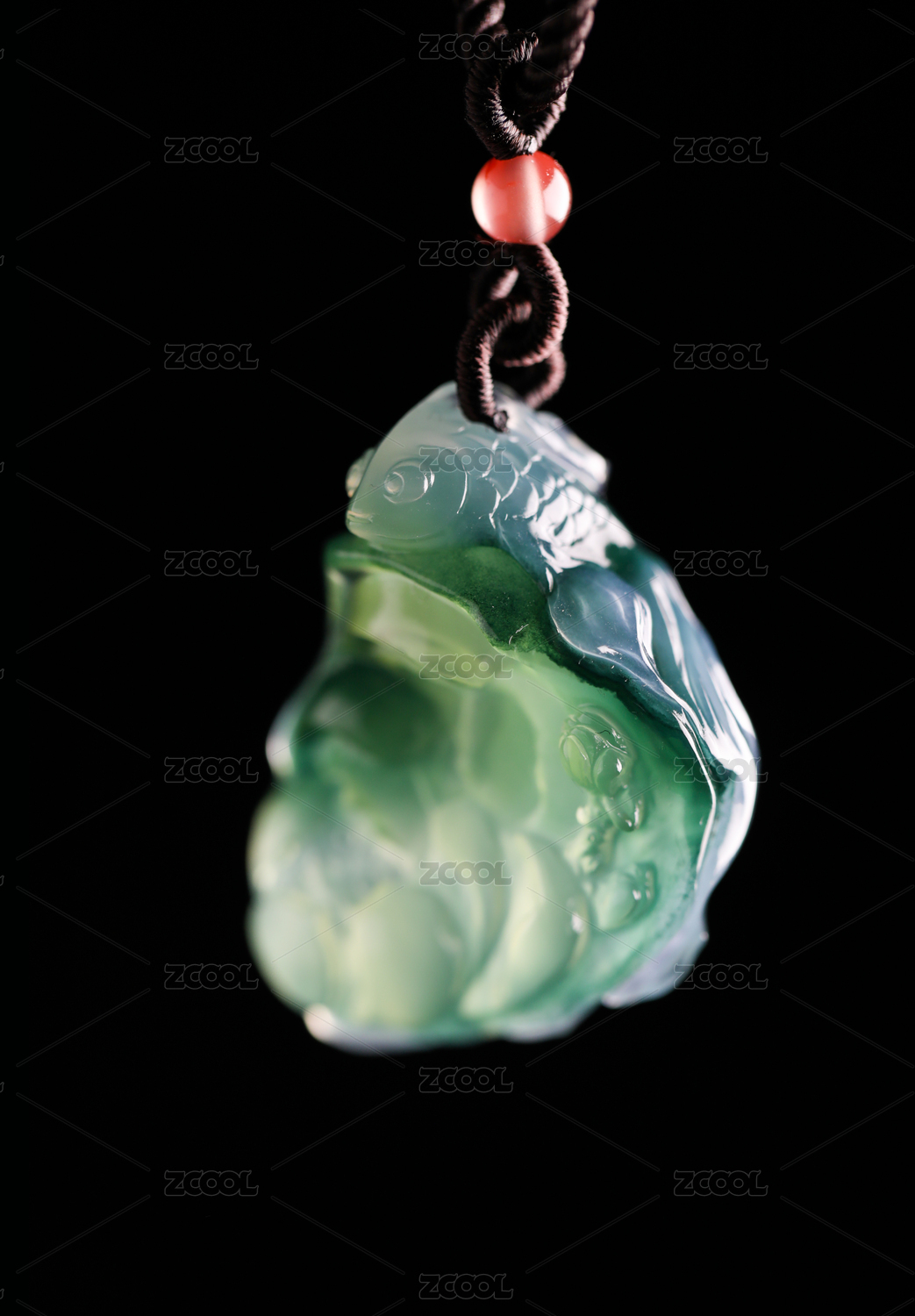 阿拉善翠色彩玉玛瑙金鱼吊坠项链