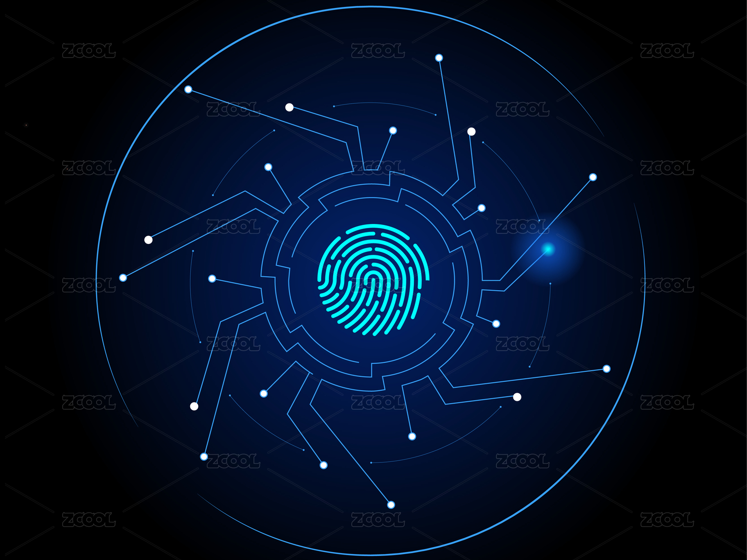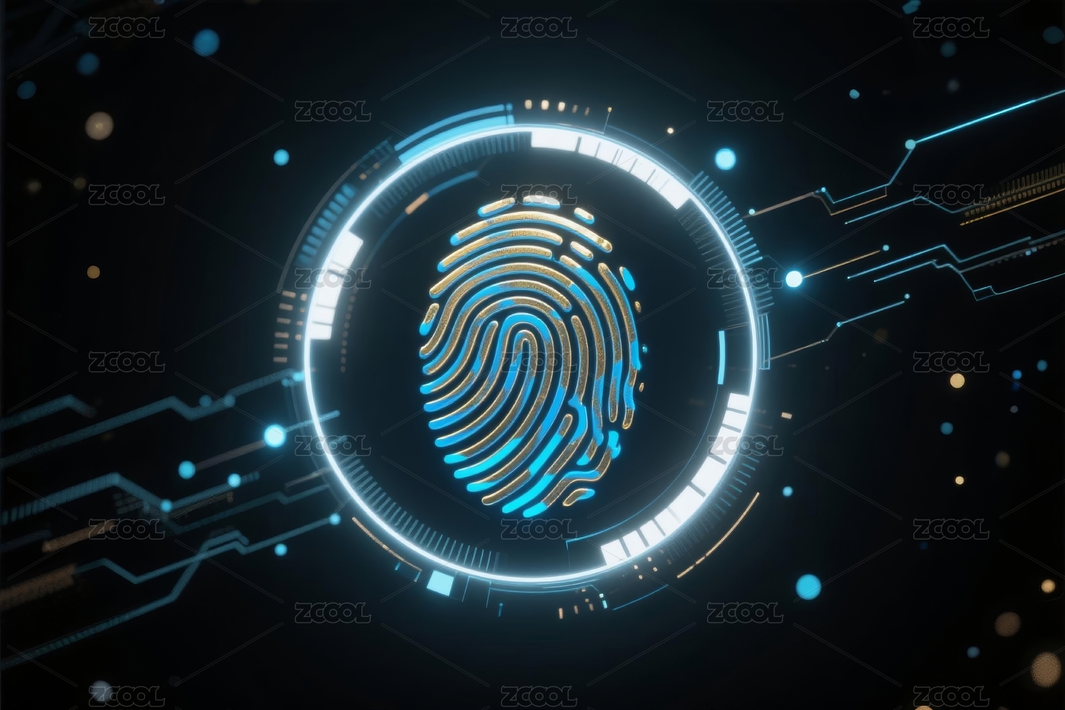 指纹解锁和指纹识别科技背景图,信息技术与安全