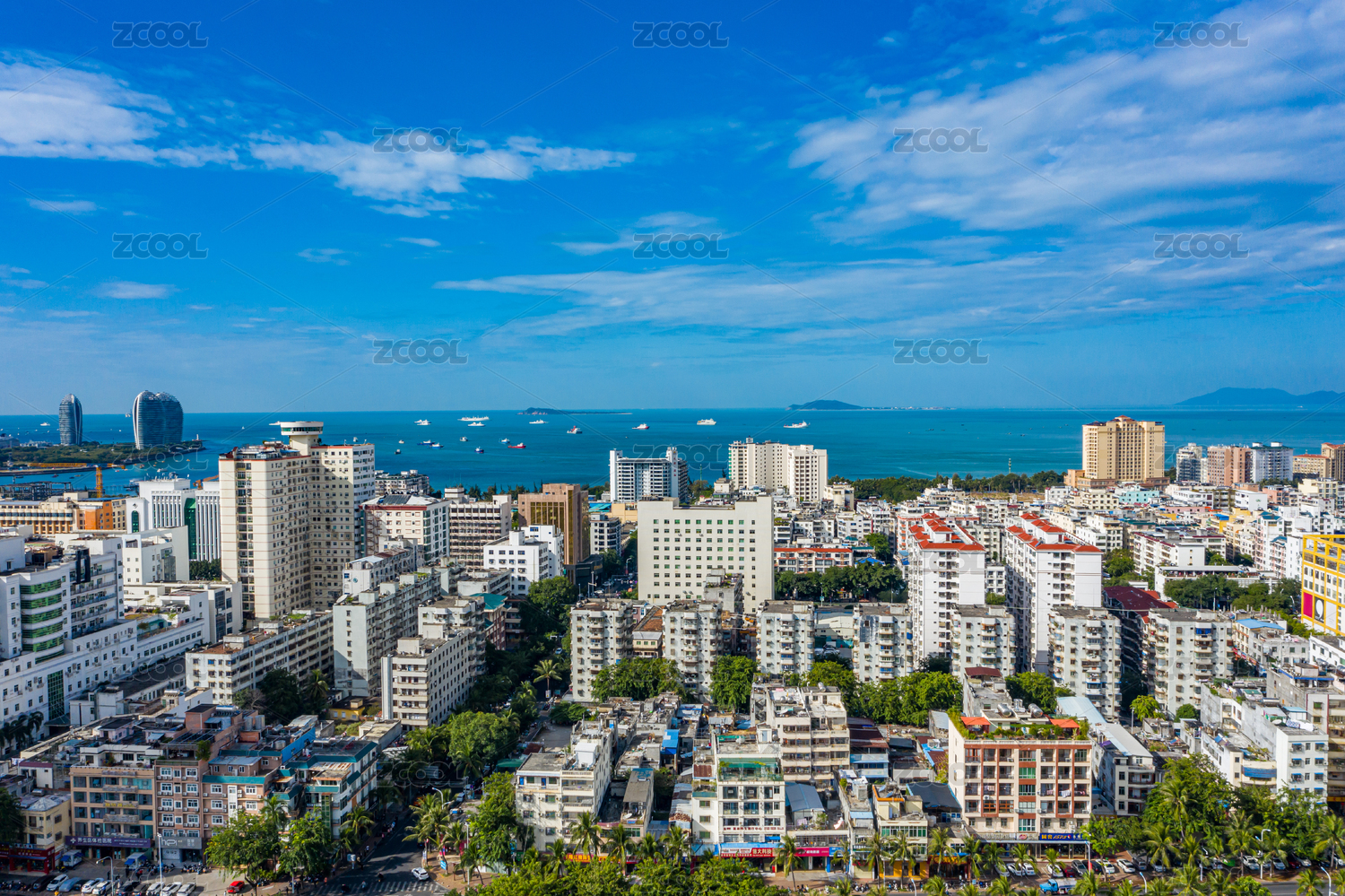 海南三亚临春岭深林公园山顶俯瞰城市建筑