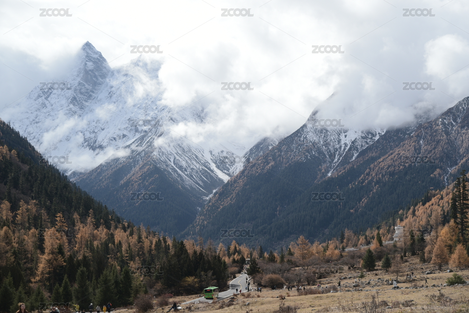 秋季四川毕棚沟雪山彩林风光