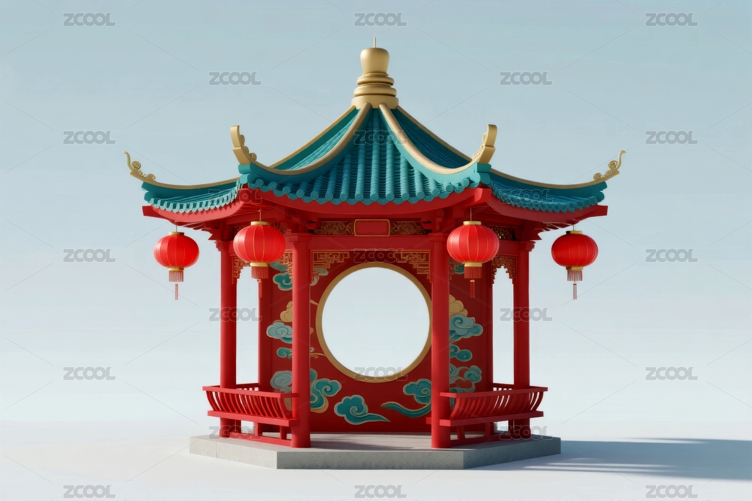 中式凉亭喜庆风展示场景