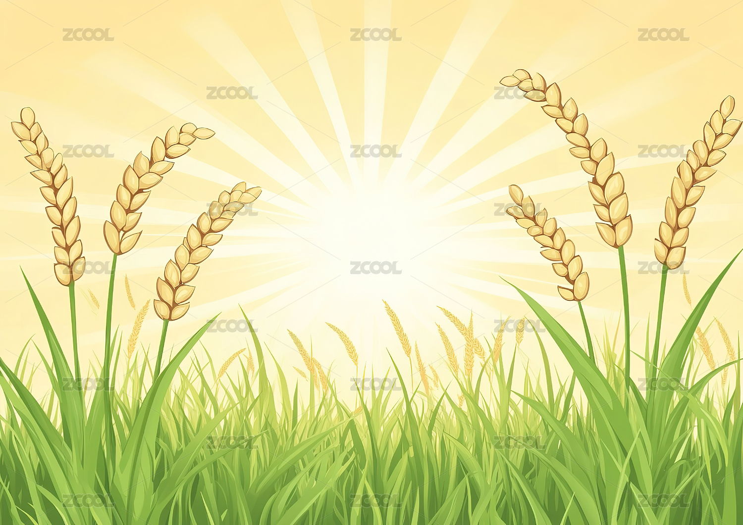 夏天金色麦田秋天节气小麦成熟秋收插画