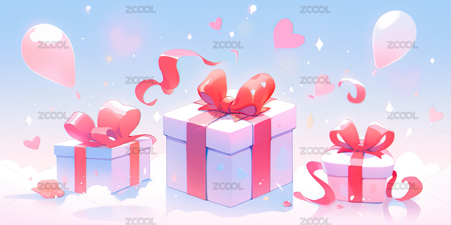 情人节儿童节七夕礼物礼品盒3D卡通插画