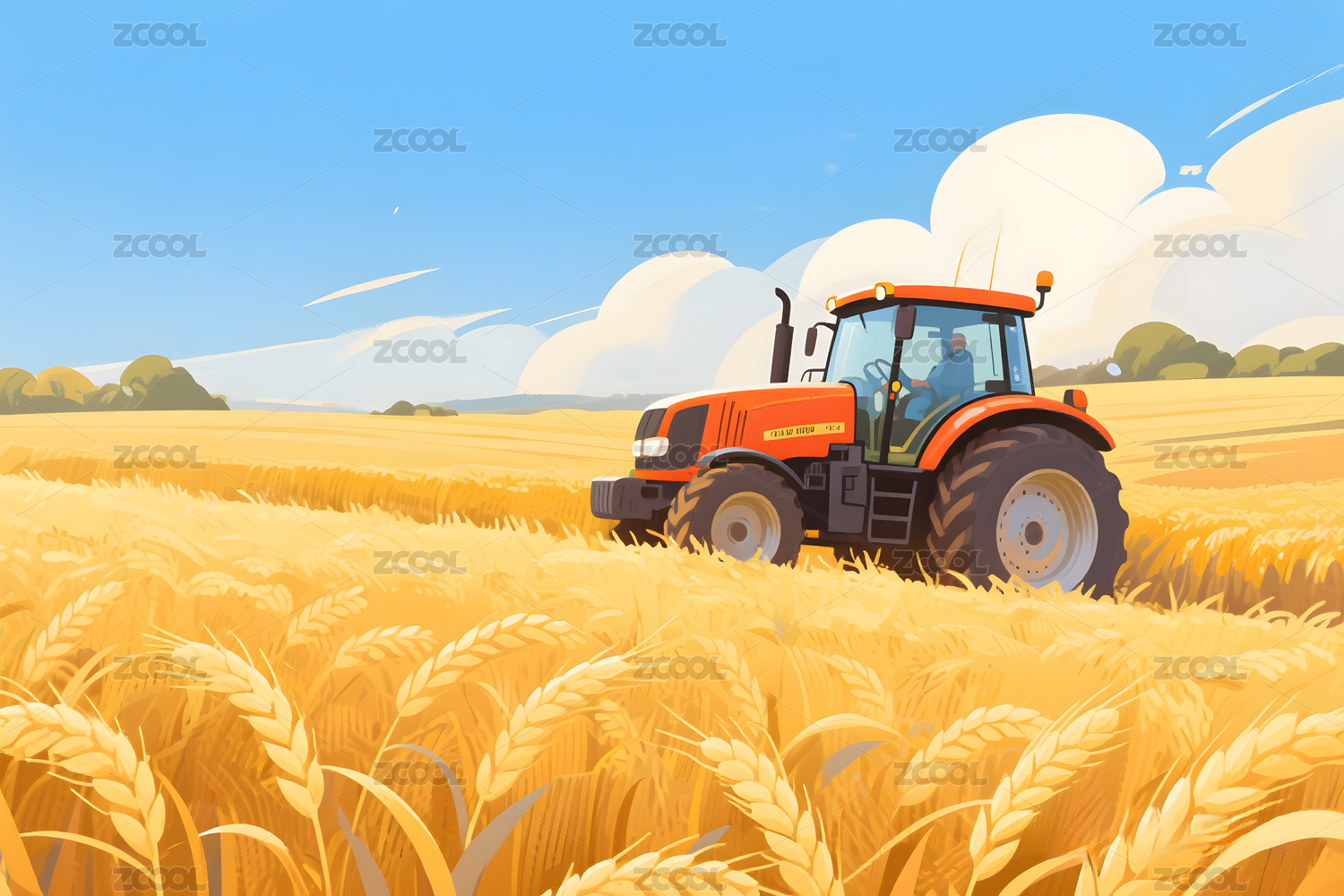 立秋节气秋天农业收获农田粮食成熟秋收插画