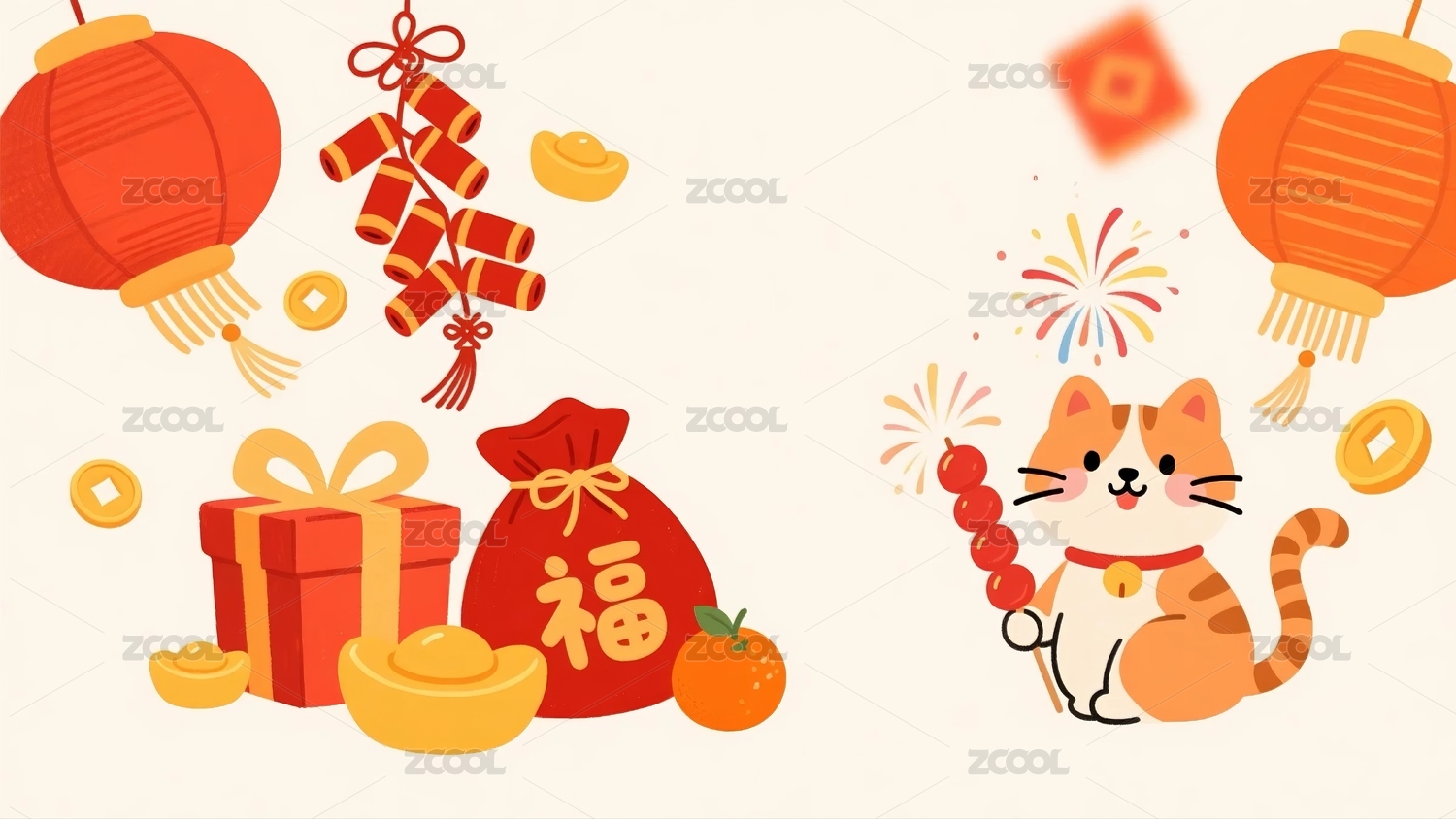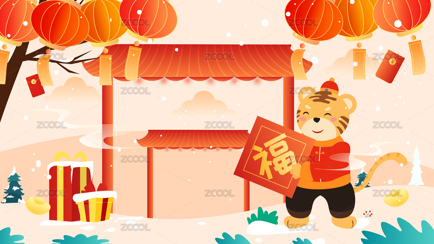 新春虎年可爱老虎恭贺新年国潮矢量插画