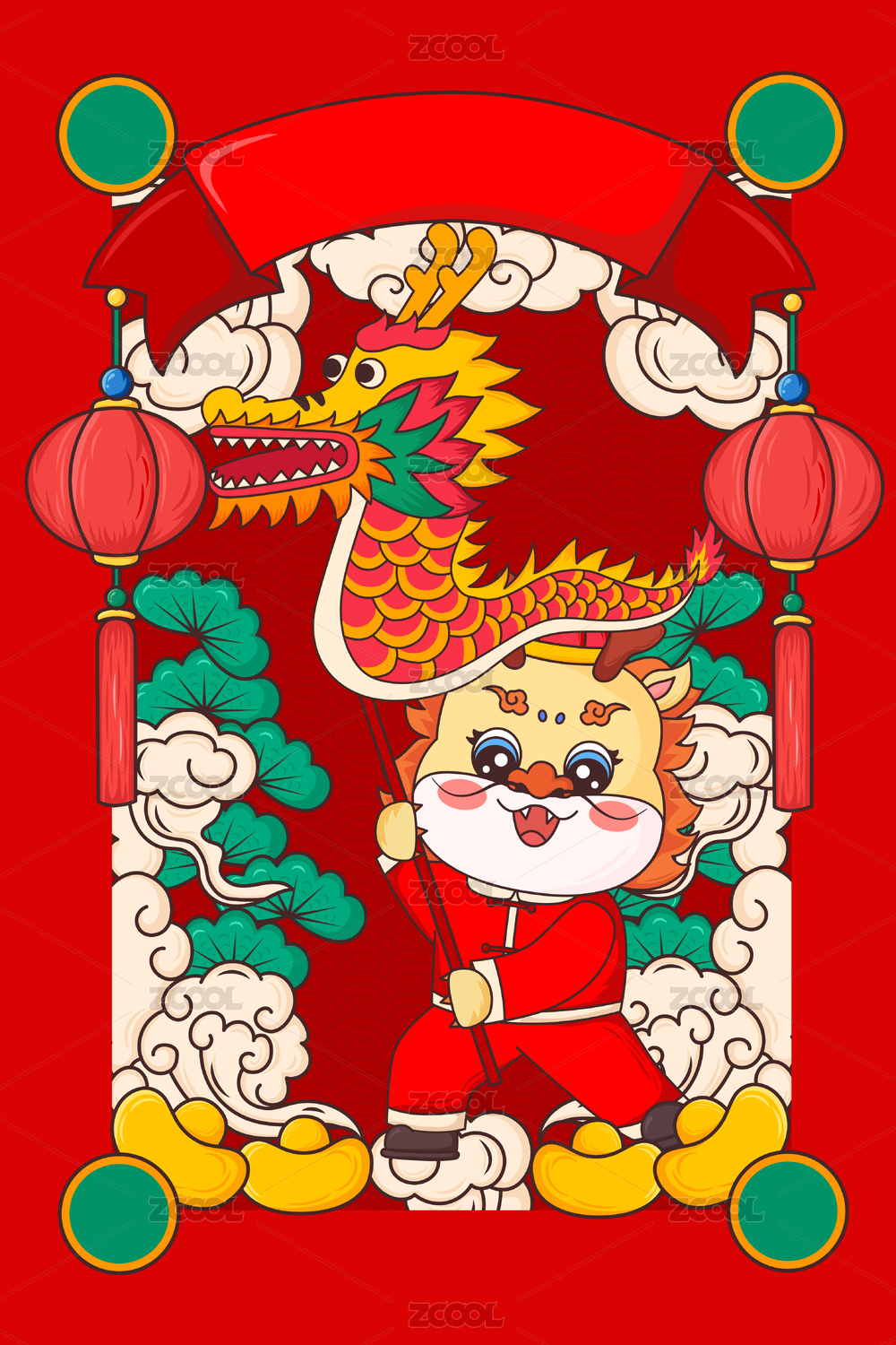 龙年生肖大吉大利红包封面背景矢量插画背景