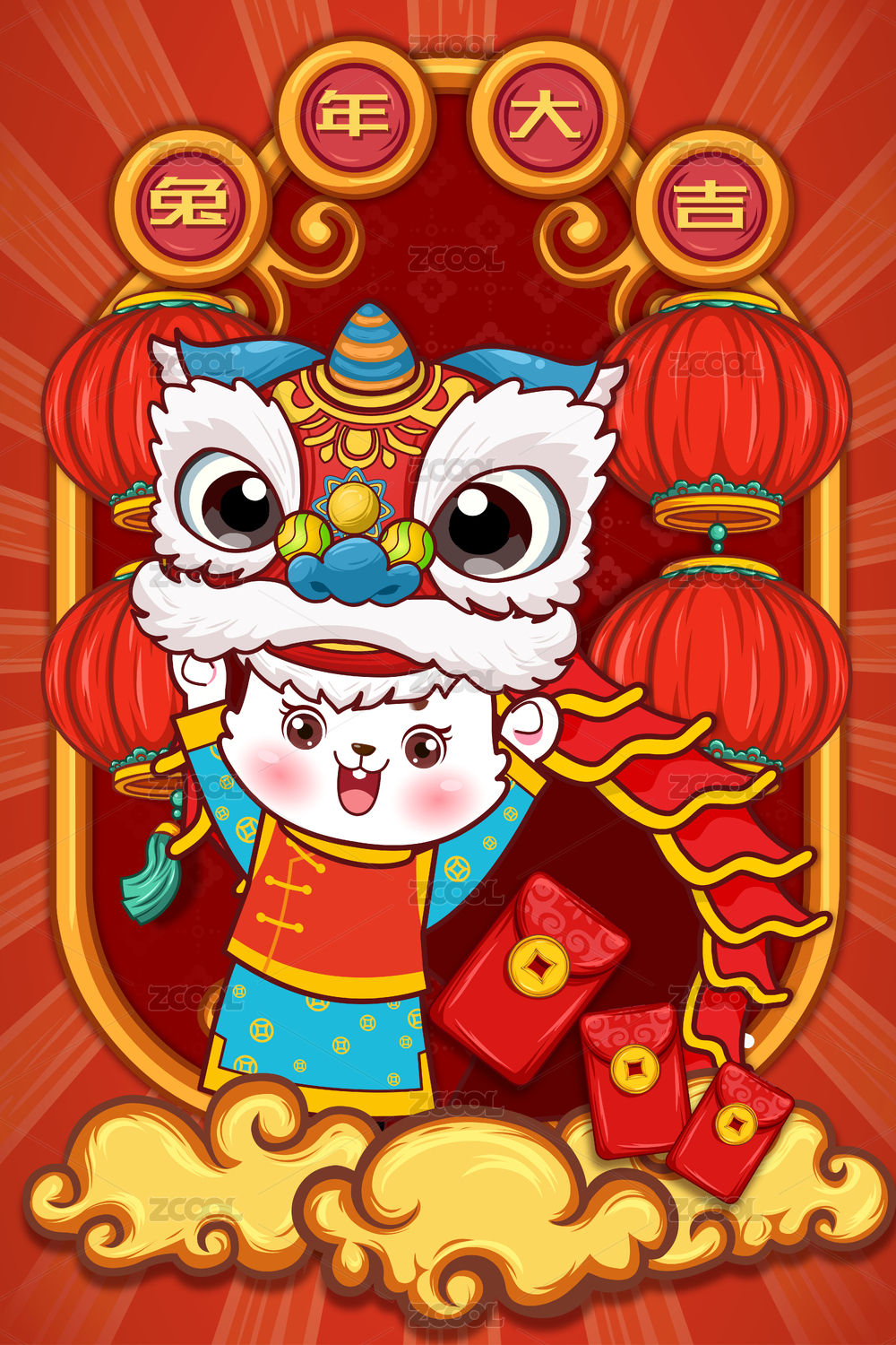 新年灯笼舞狮元素,可以自行加文字和祝福语