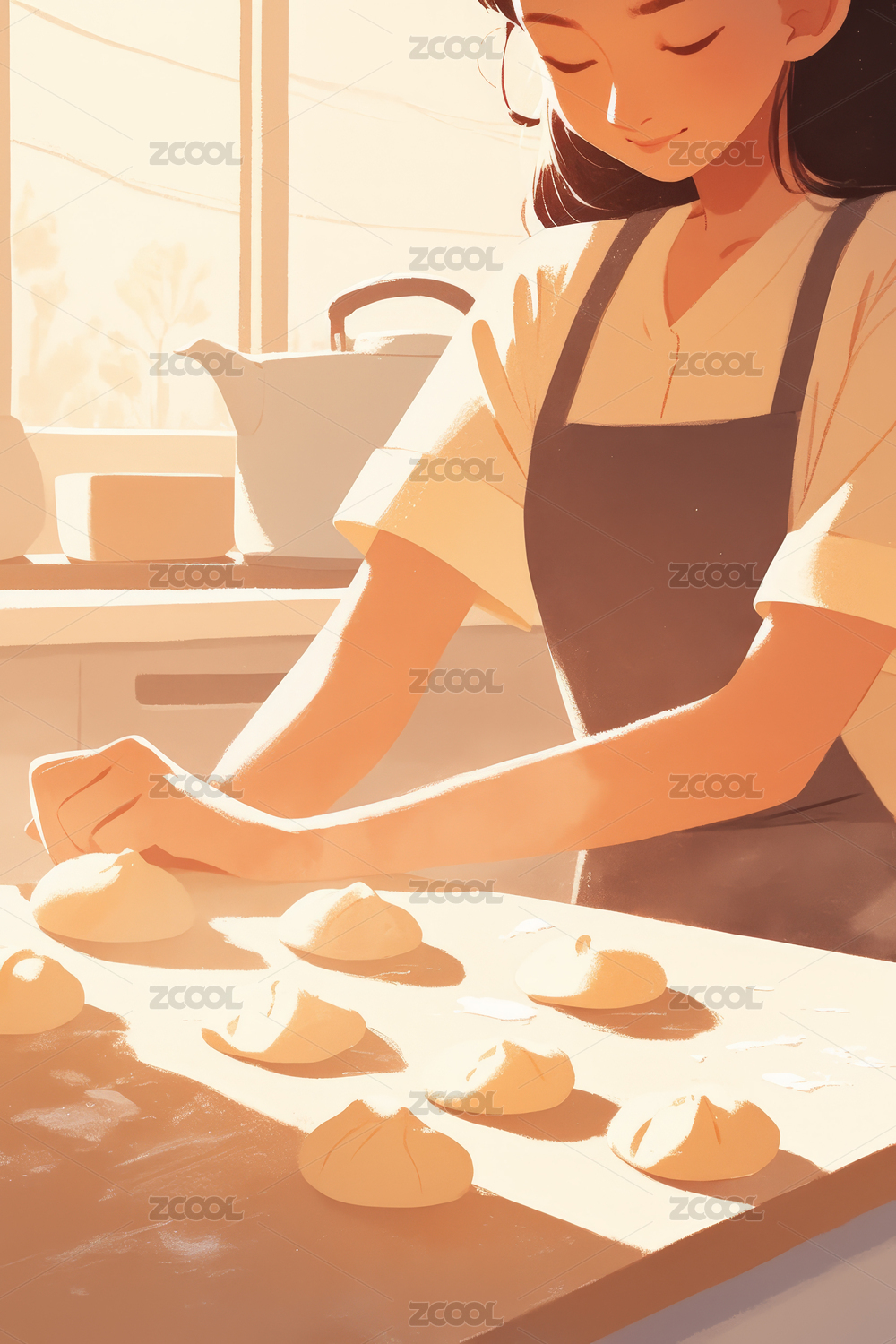 小女孩在家做蛋糕面包,享受烘焙时光。