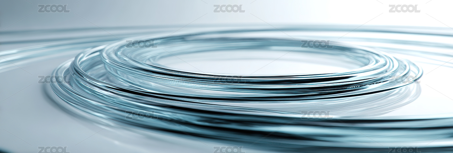 蓝色透明的圆环玻璃特写,干净科技感背景