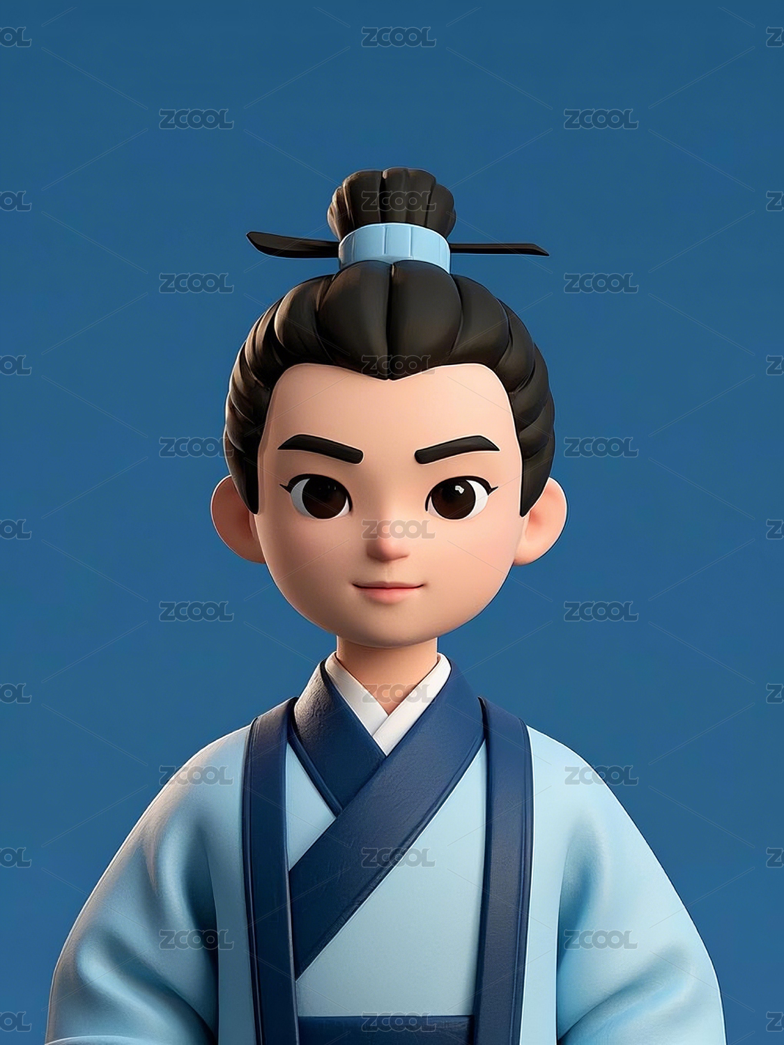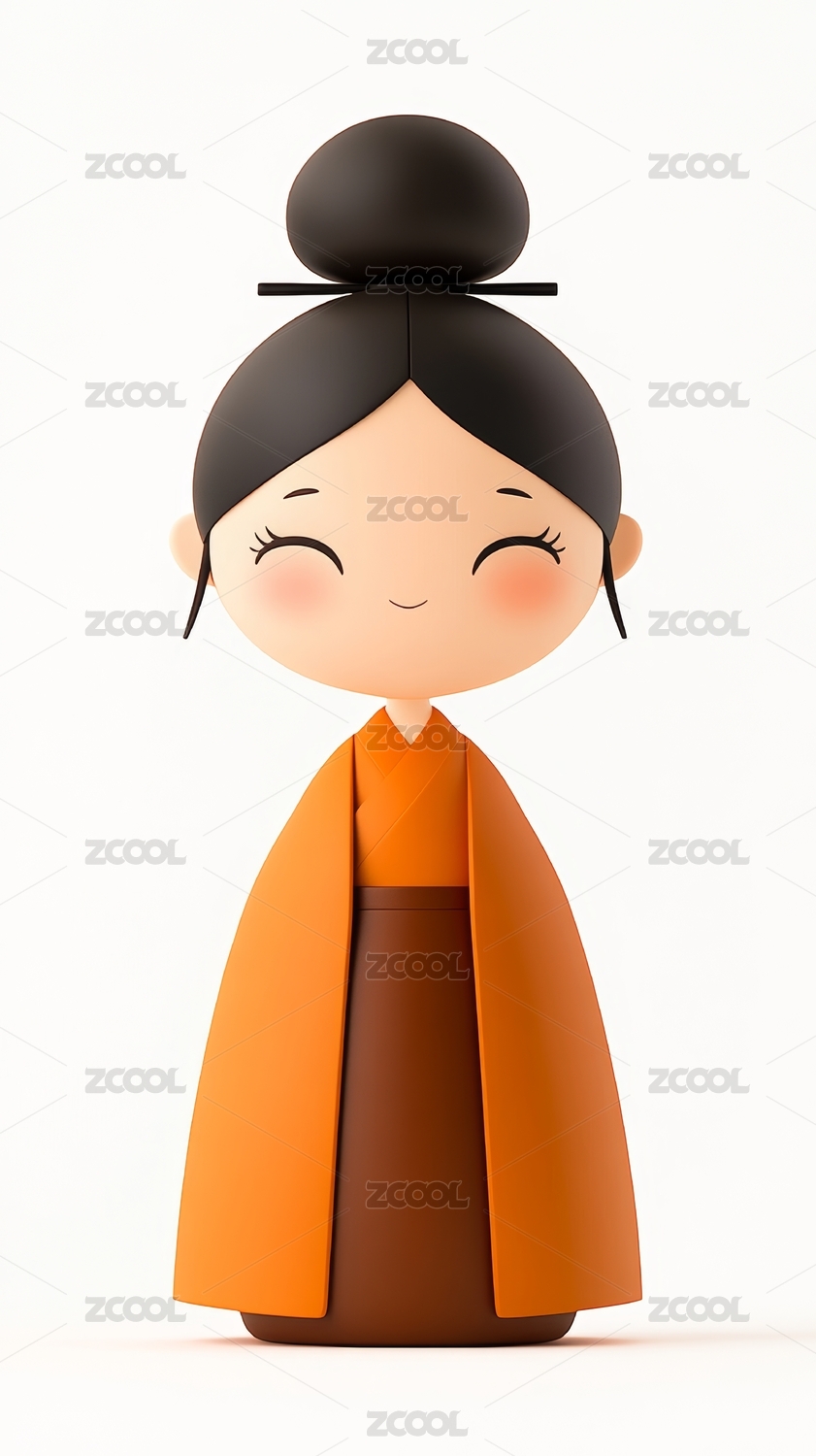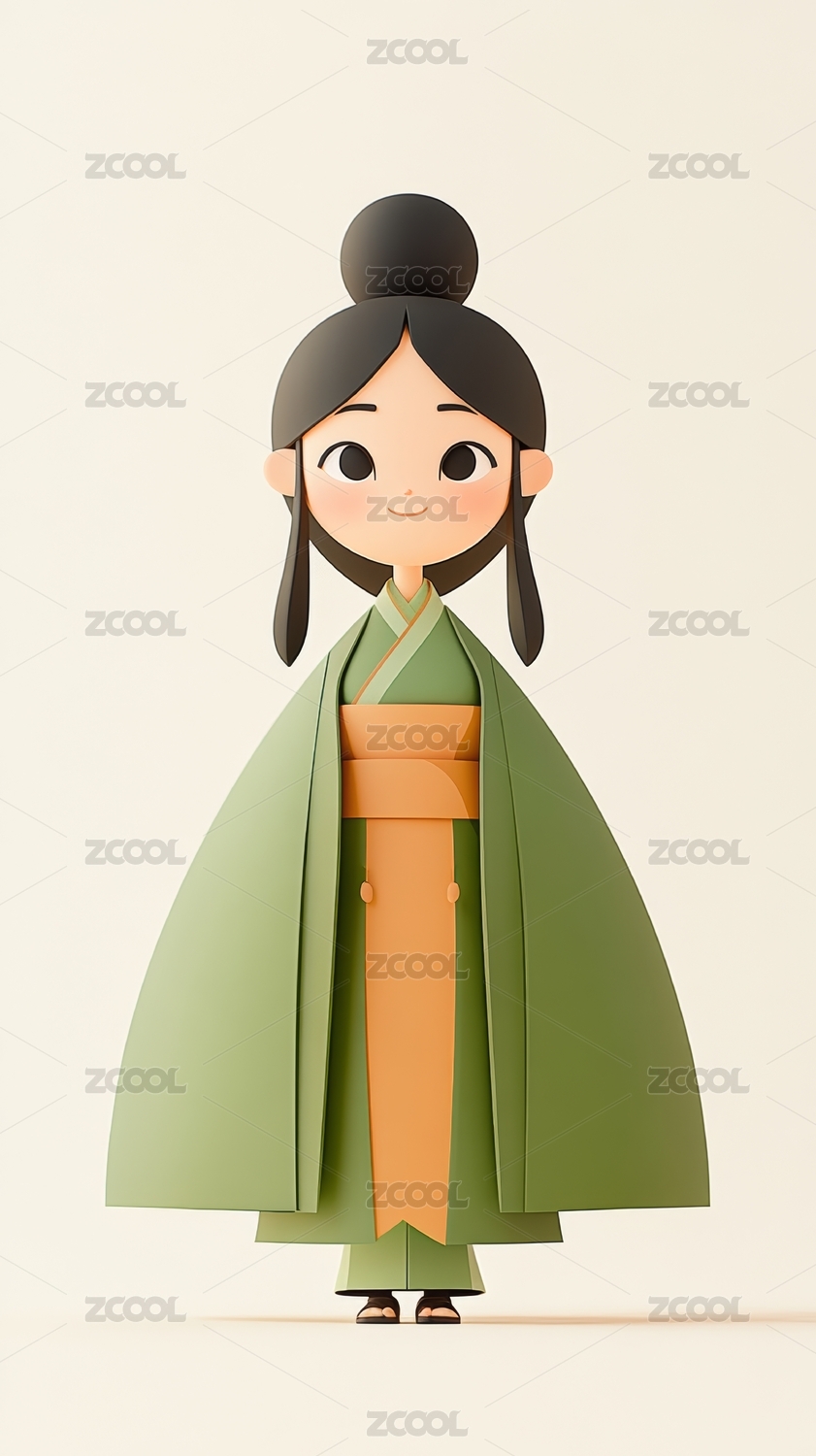 简约,白色,卡通,插画,微笑,人物,红色,古装,传统服饰,男孩