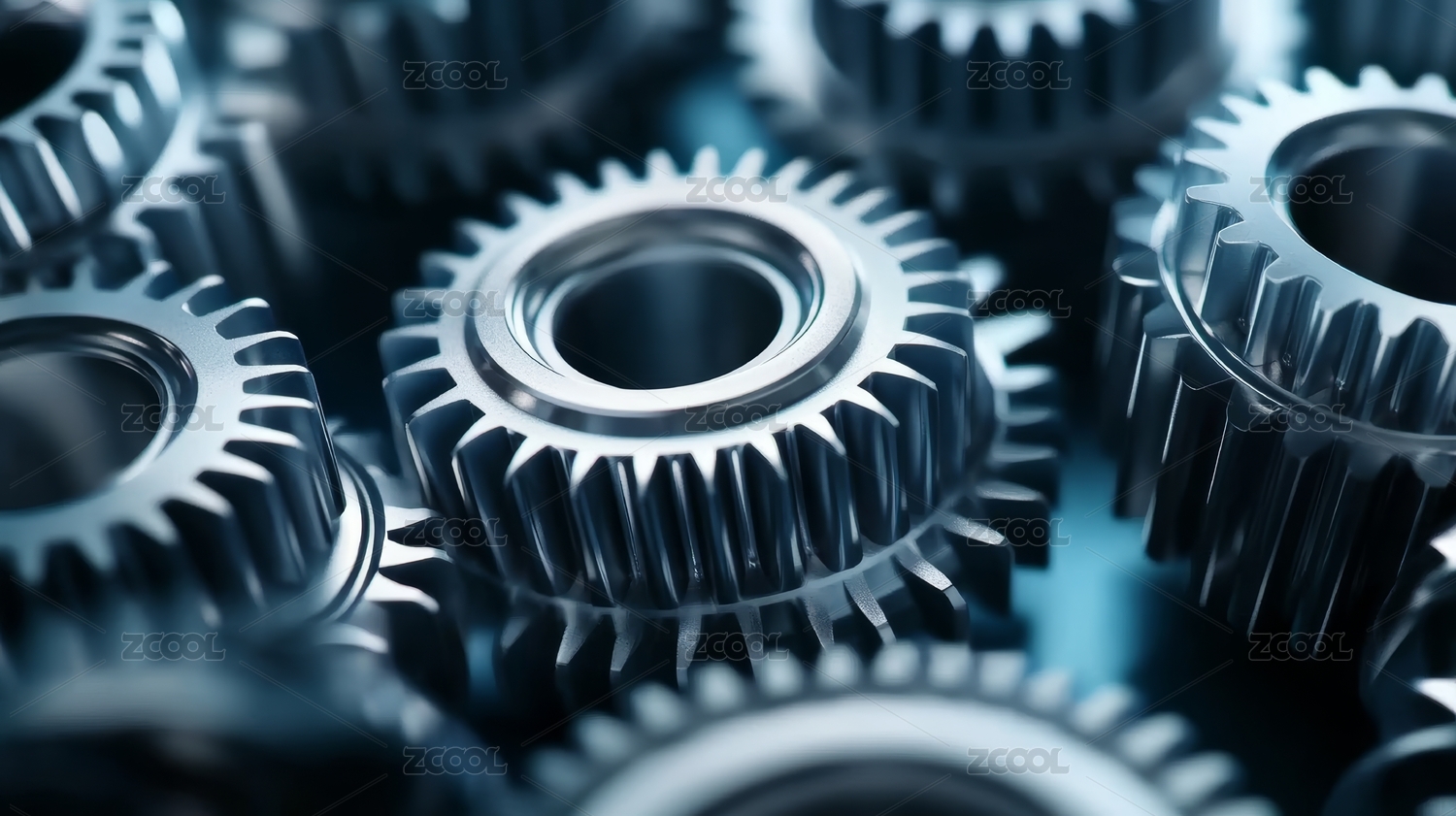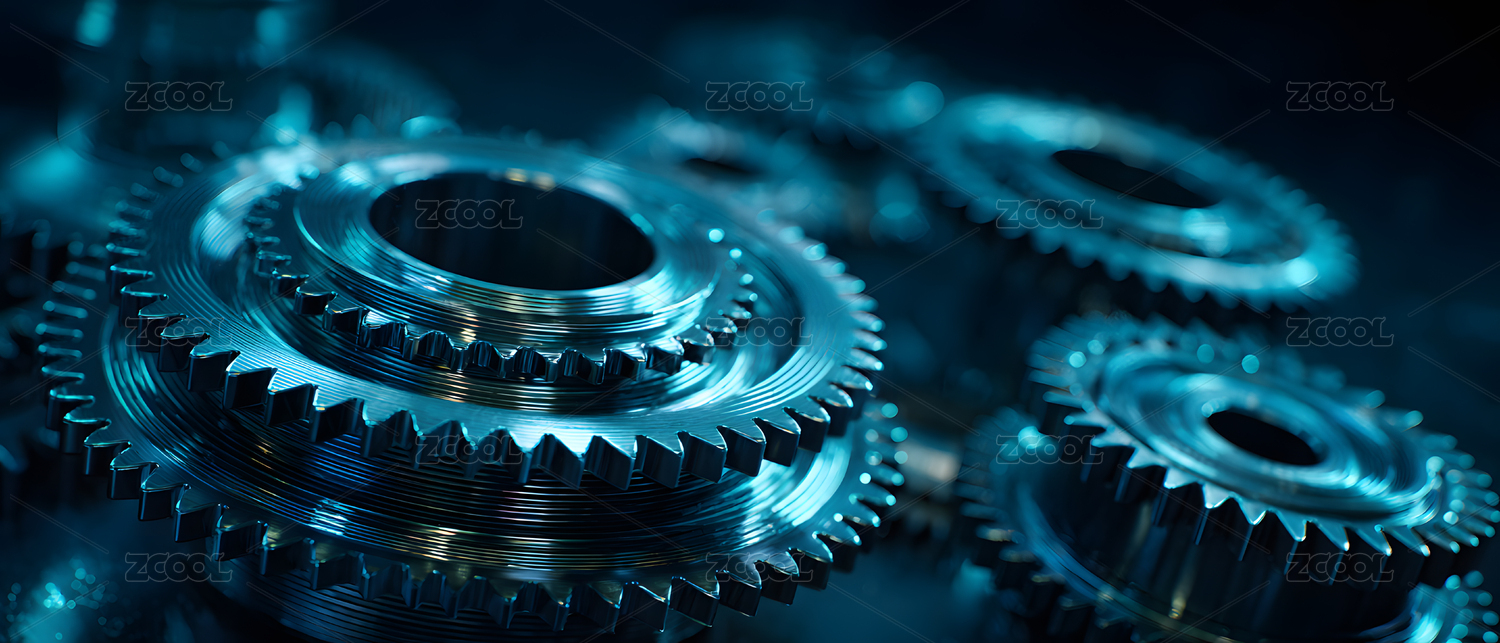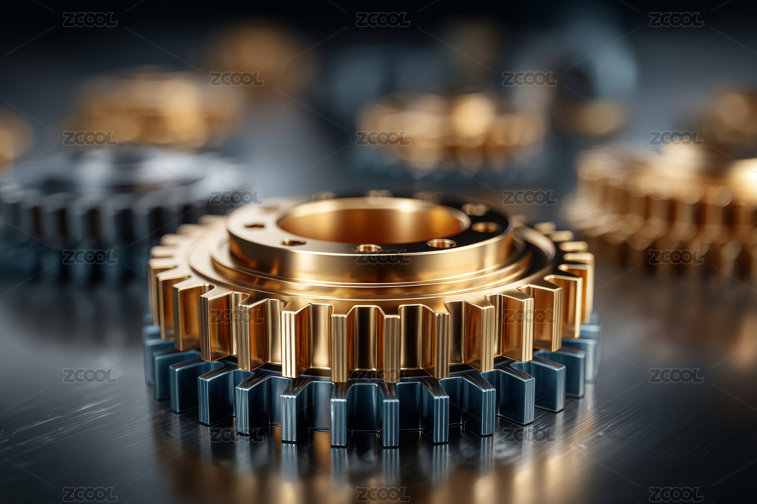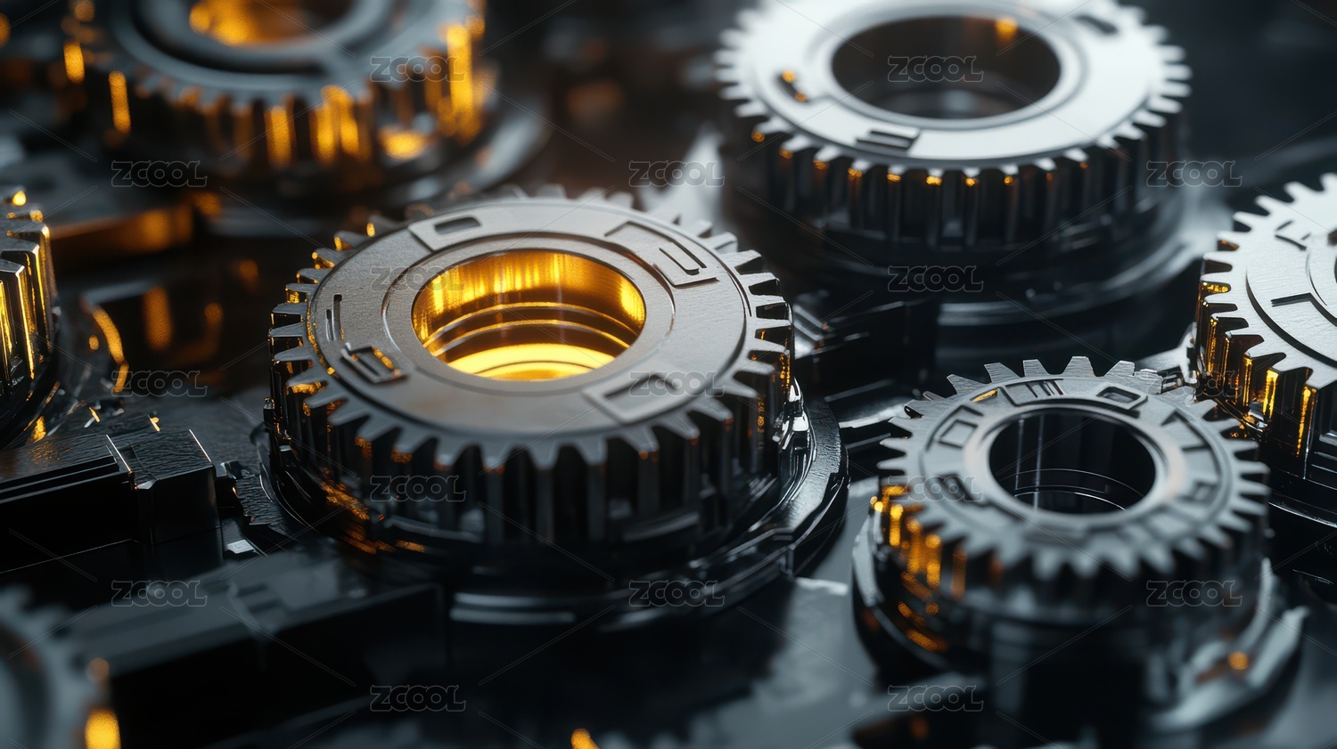 抽象精密度齿轮高科技电路与芯片3D渲染
