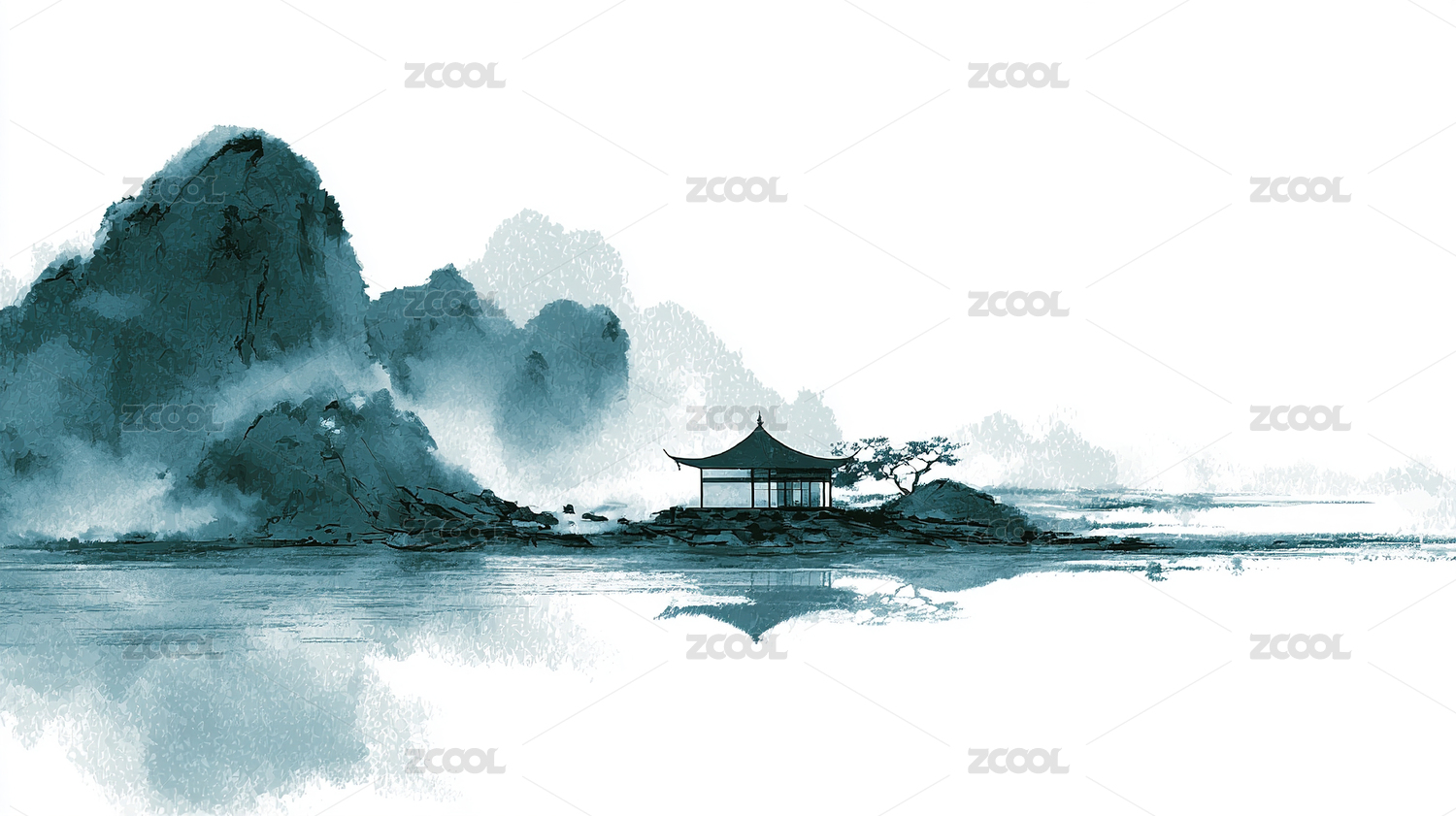水墨画,中国风,古建筑,传统文化,山水画,传统艺术,东方美学,自然景观,艺术创作,文化传承