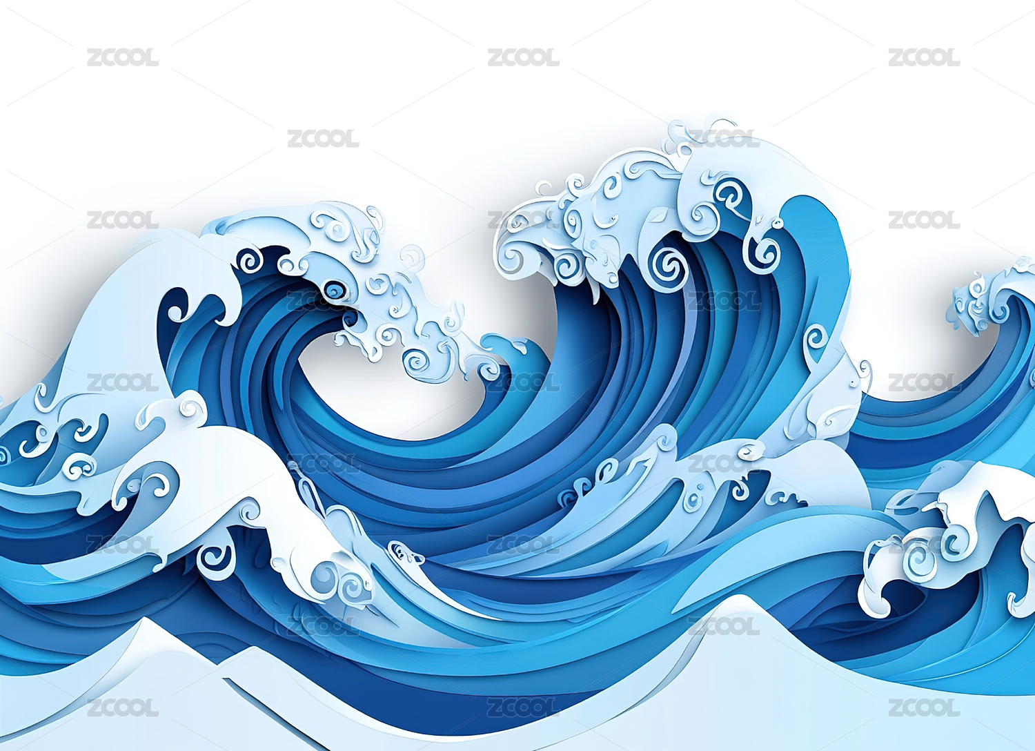 海浪立体剪纸插画背景