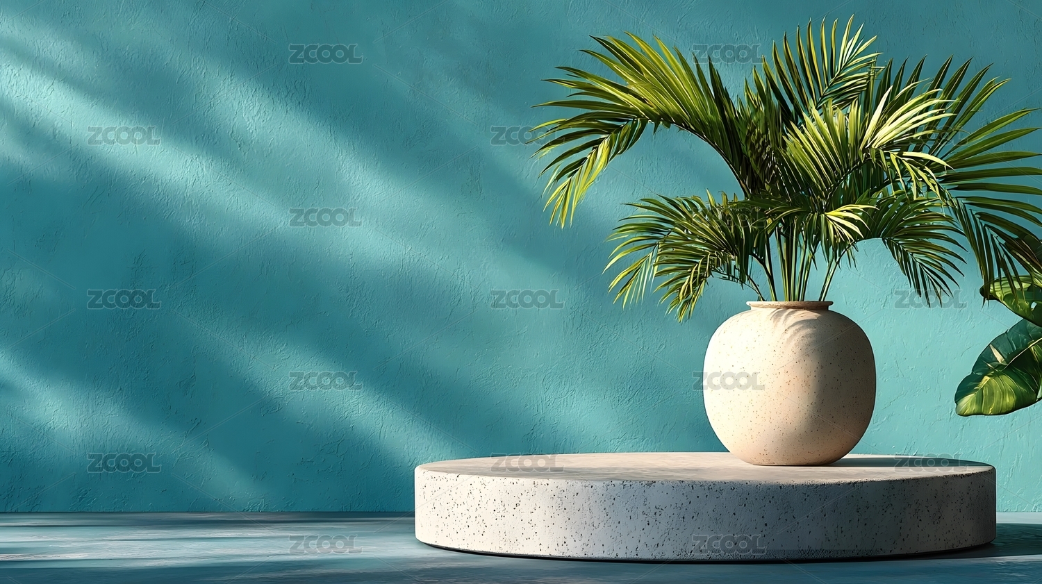 热带植物与花瓶的简约场景
