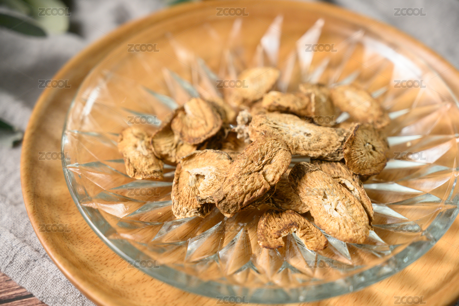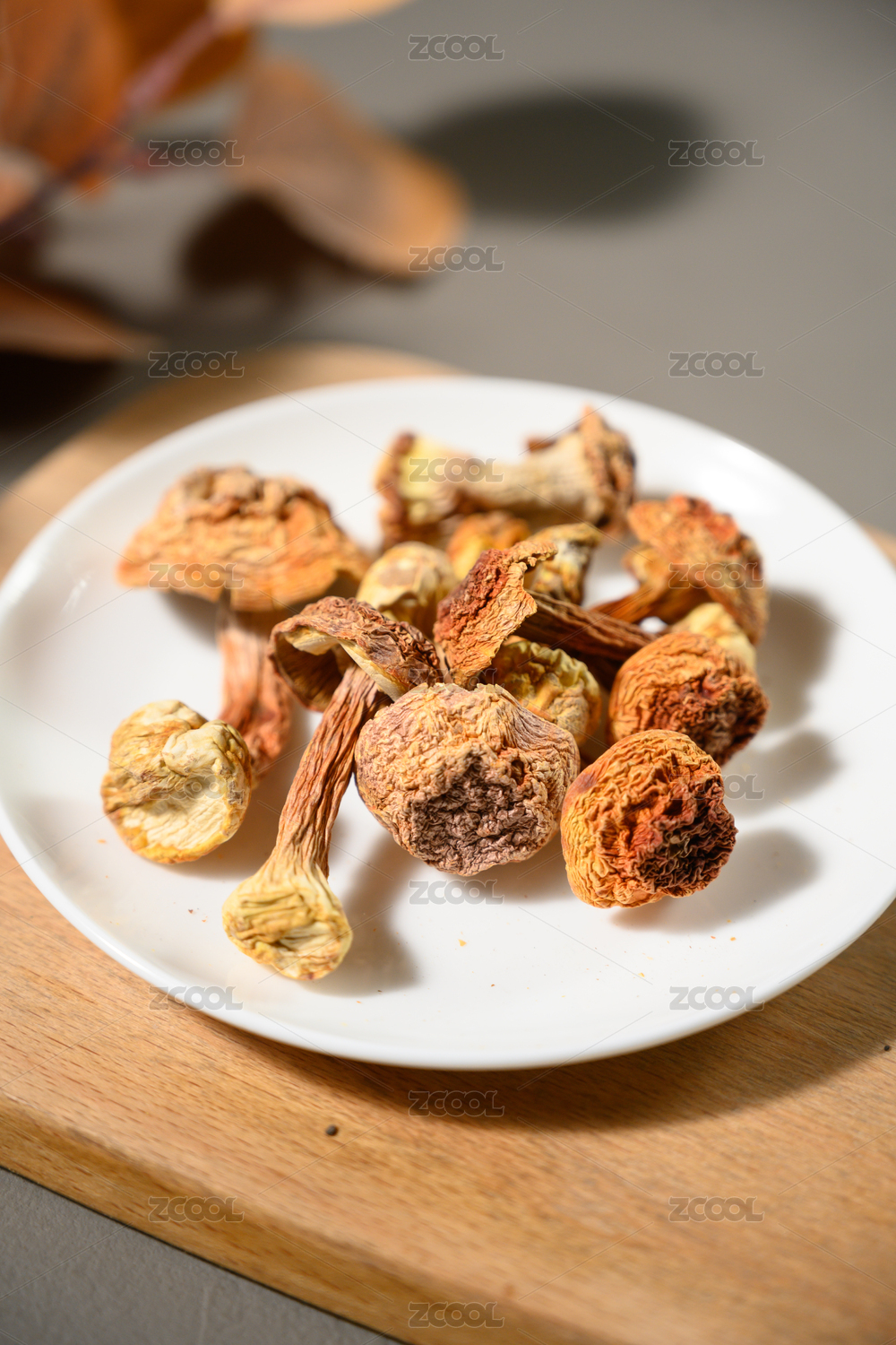 放在盘子里的云南香格里拉野生菌姬松茸干货