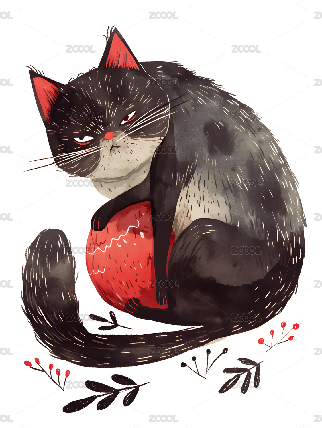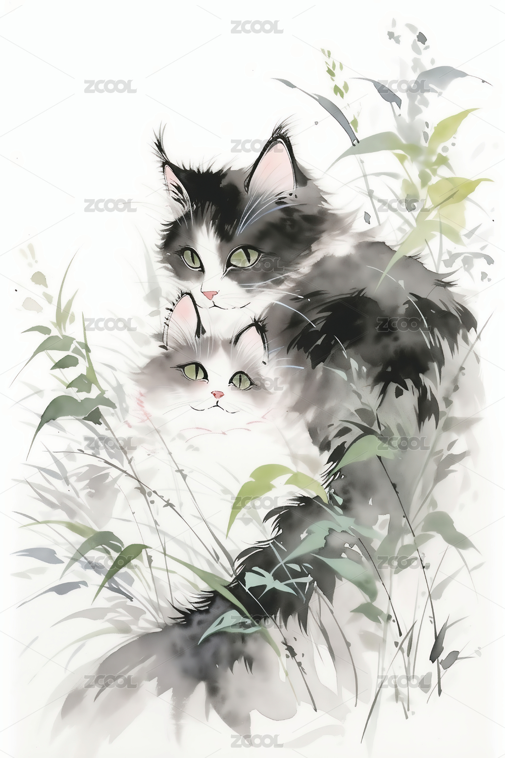 萌宠猫咪写意图