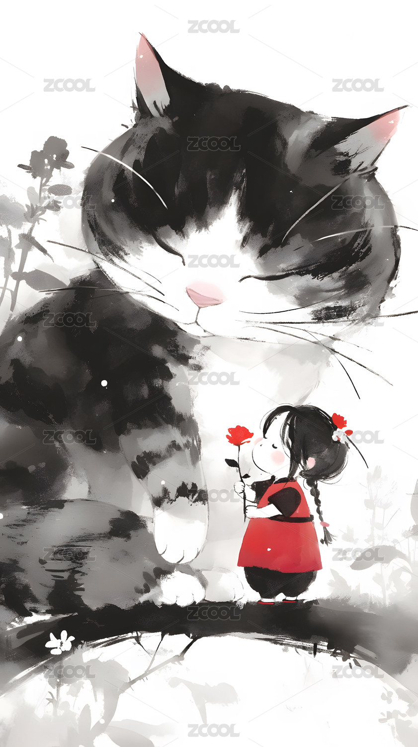 巨大的猫咪与小女孩