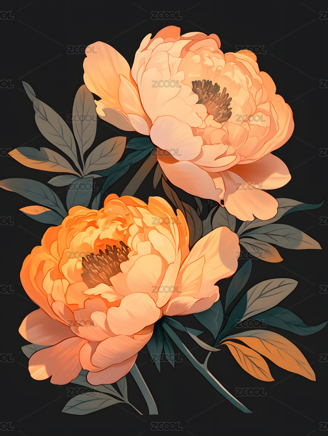 牡丹花插画