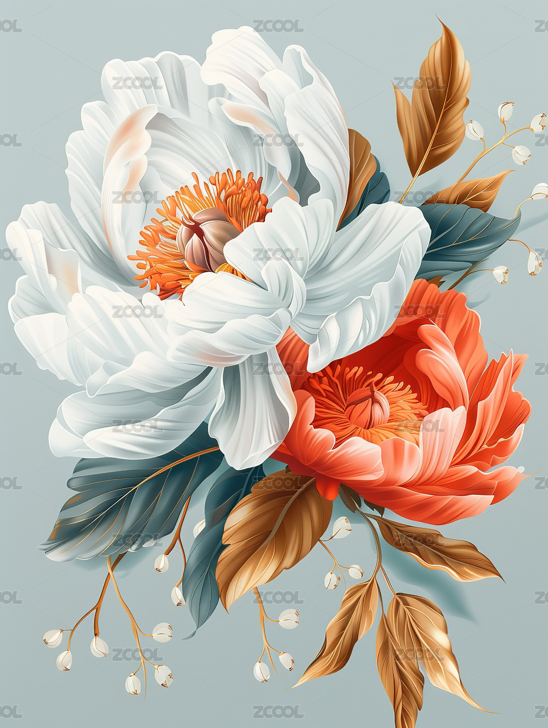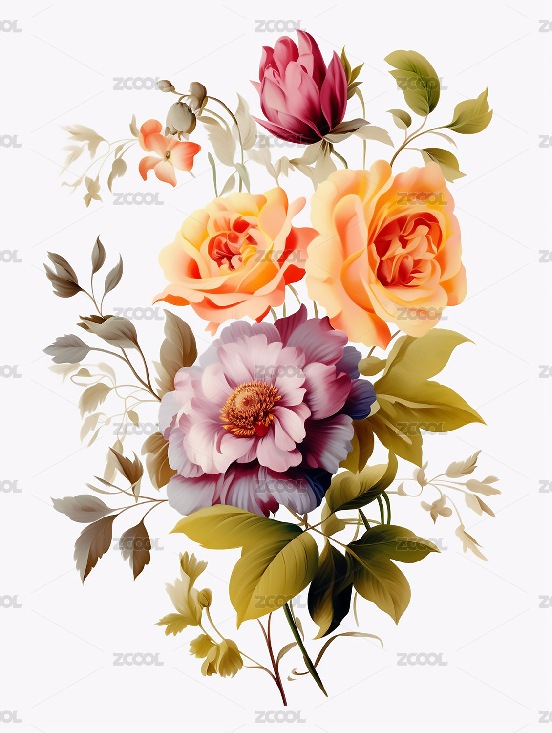 清新复古盛开的牡丹