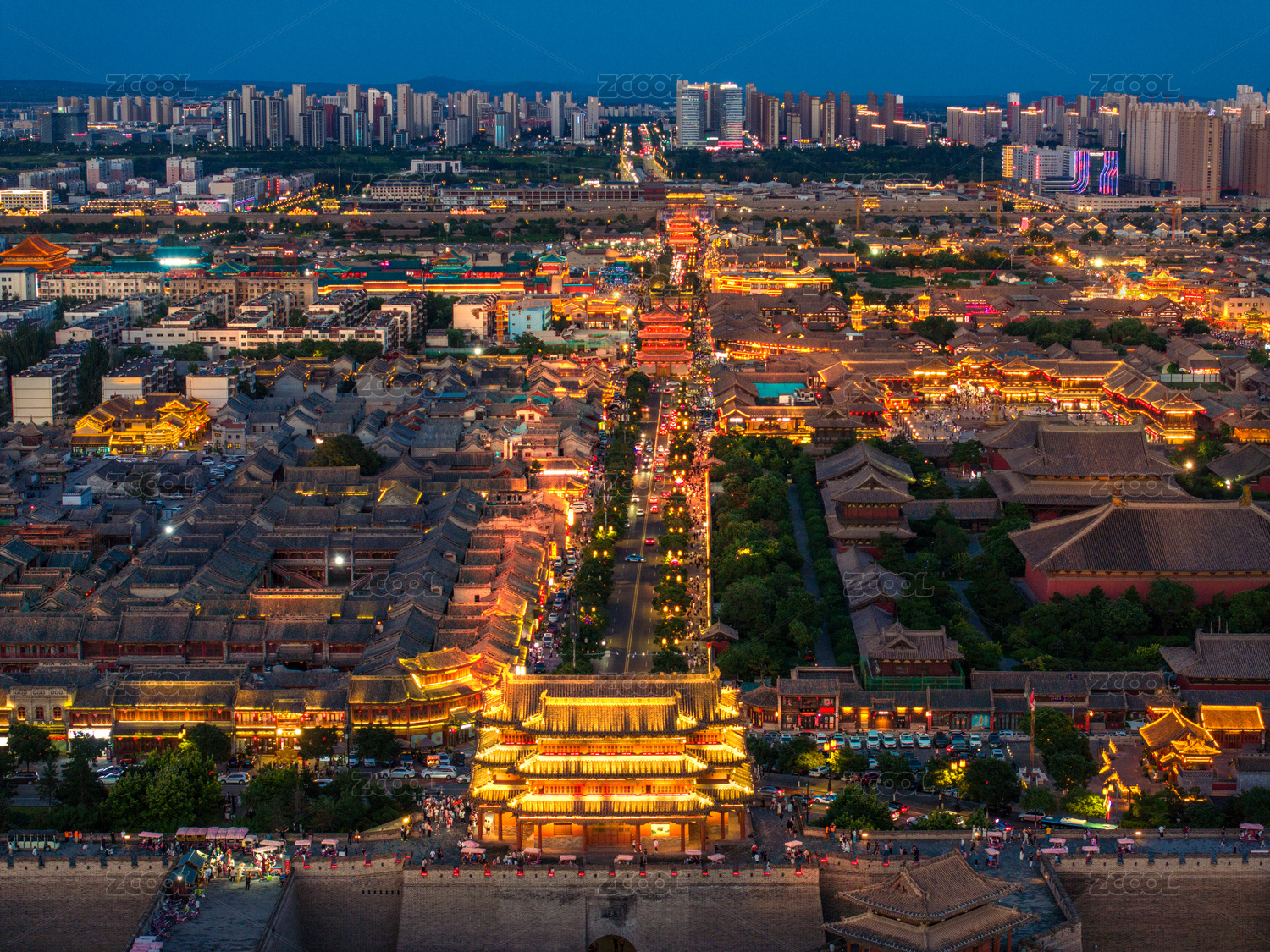 中国,山西,忻州,忻州古城,古城,夜晚,夜景,晚上,户外,无人