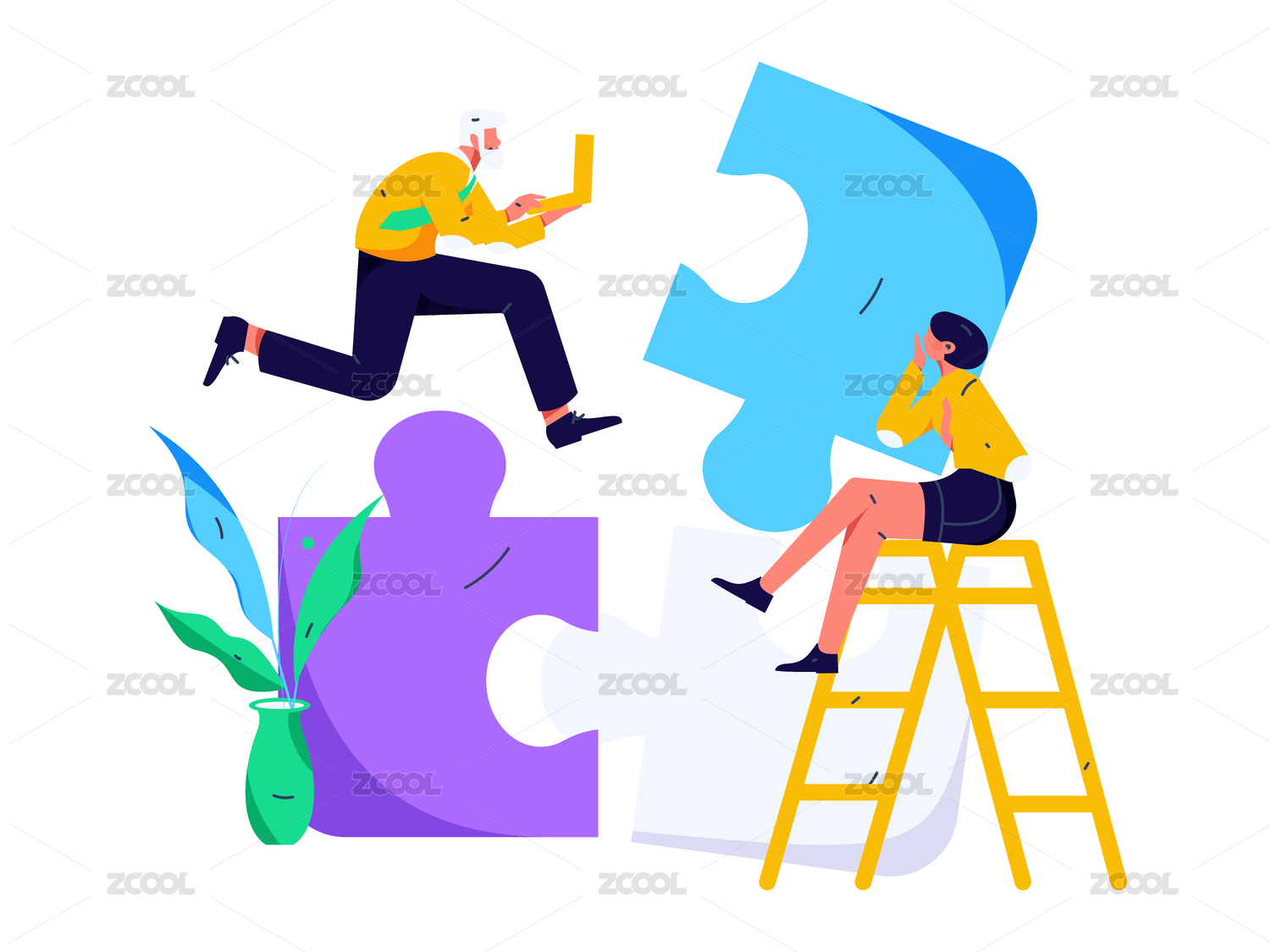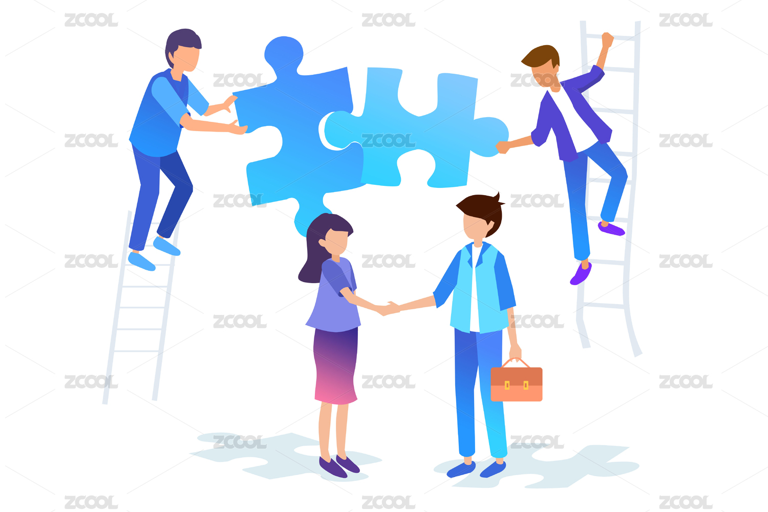 协作的明星团队53, 矢量扁平人物场景创意概念插画.eps