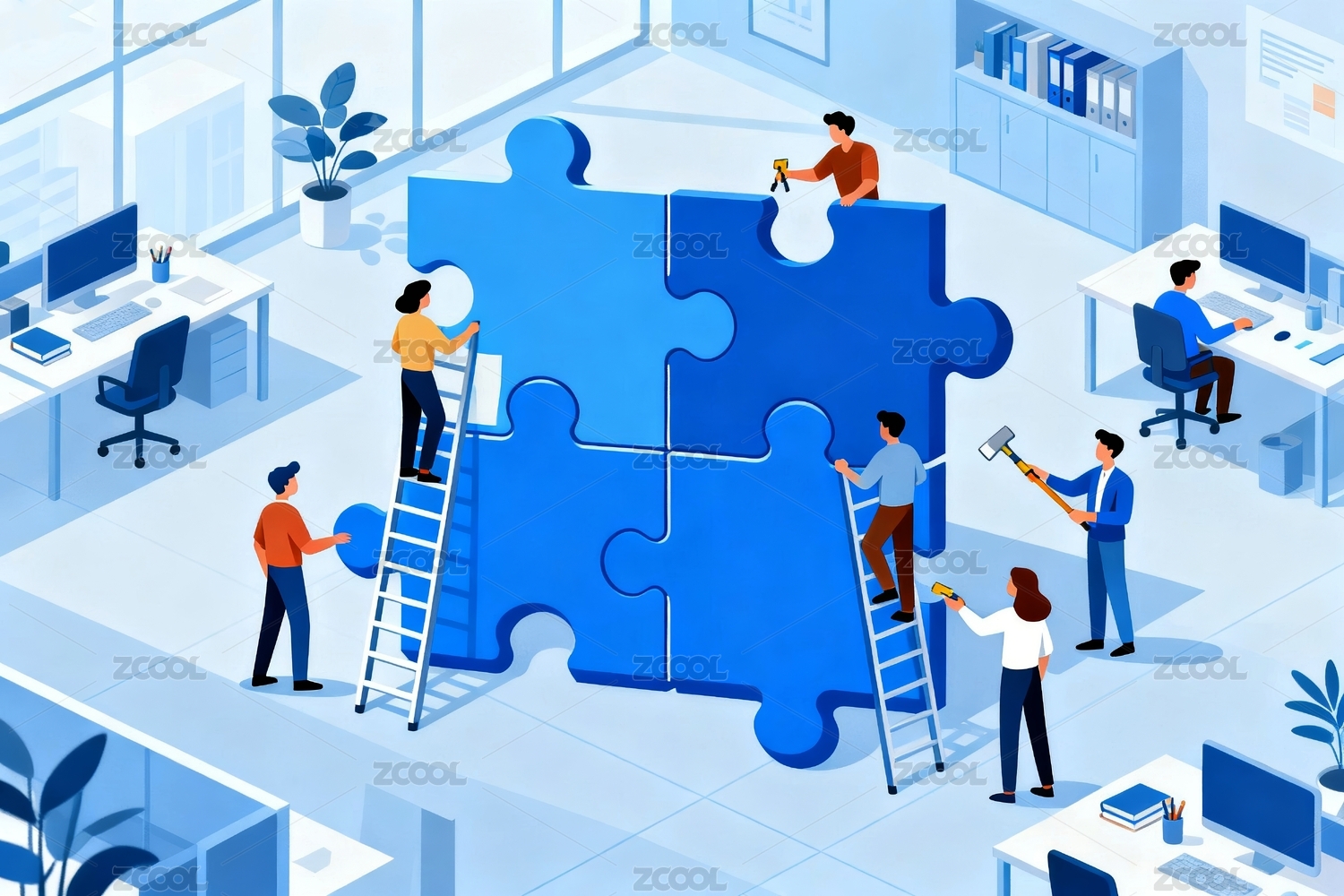 协作的明星团队 矢量扁平人物场景创意概念插画