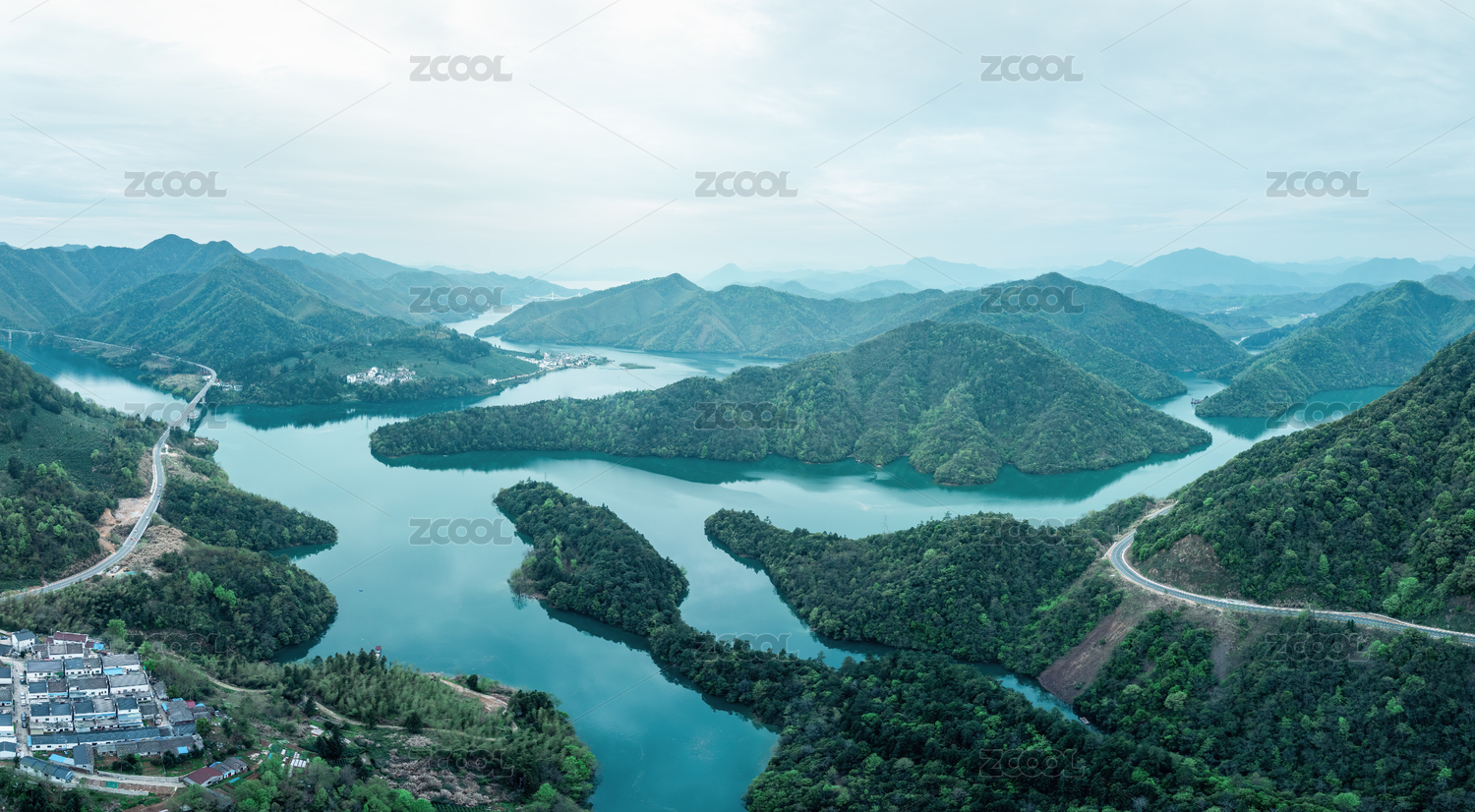 航拍视角下的中国淳安县夏季千岛湖自然风光