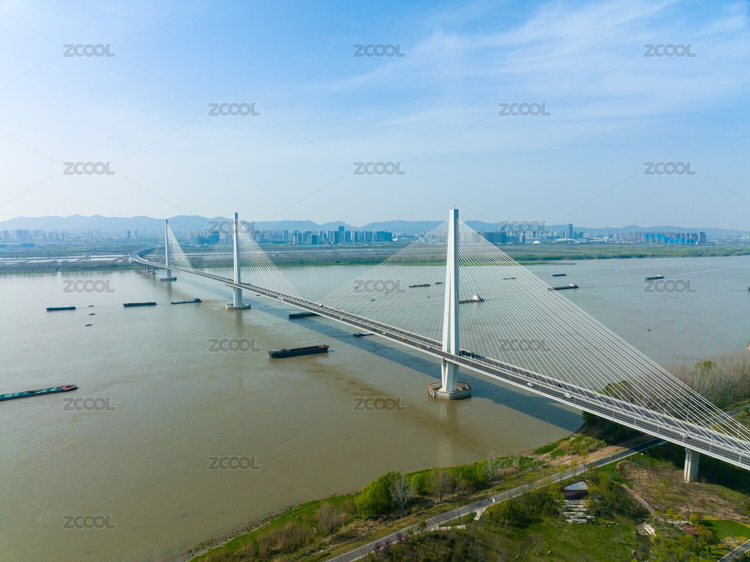晴空下的江心洲长江大桥