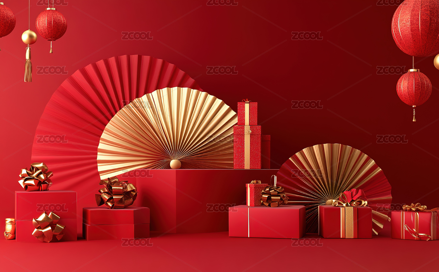 无人,中国文化,传统,插画,红色,节日,春节,三维图形,设计,舞台