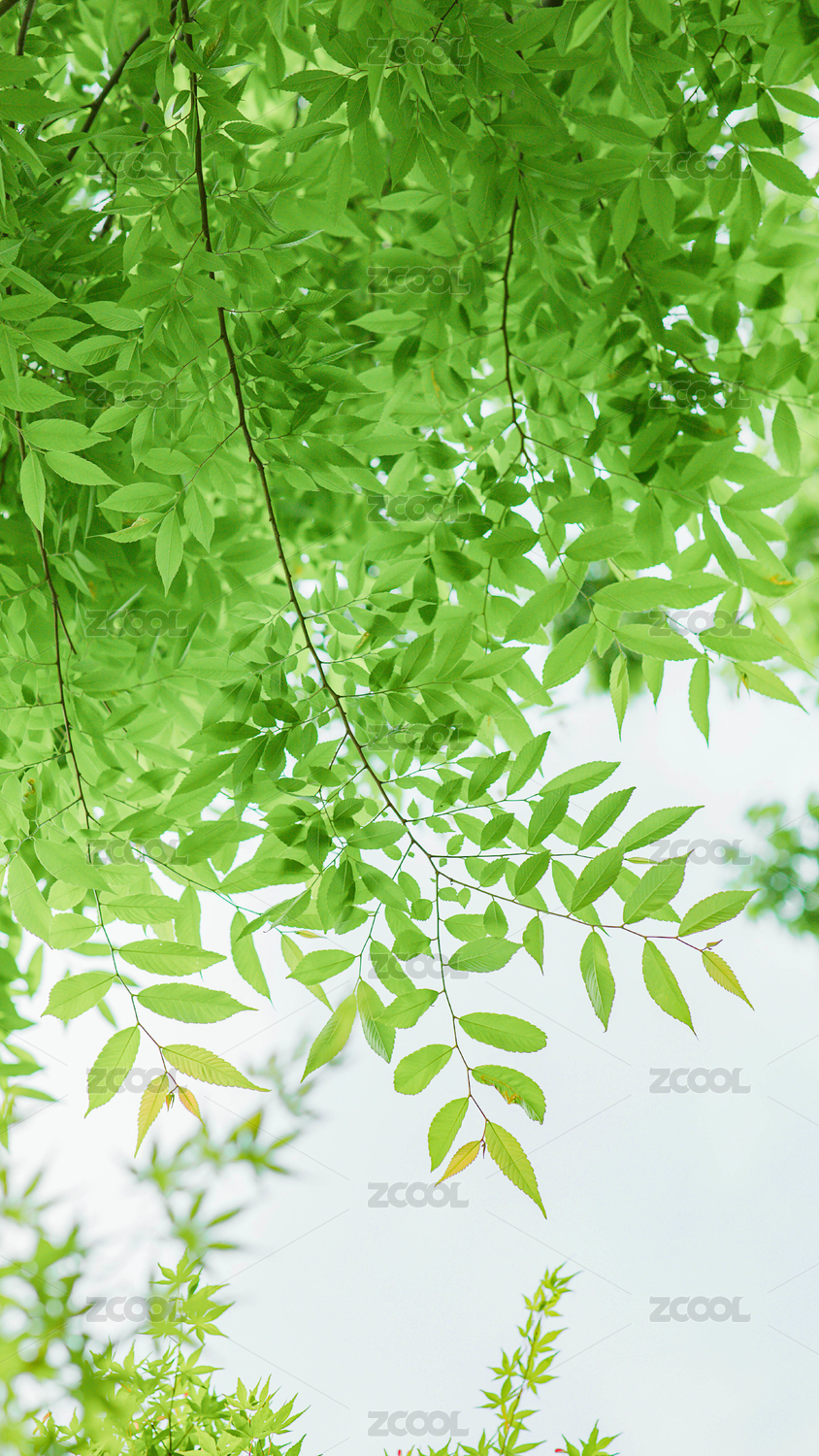 树叶对天的低角度视图