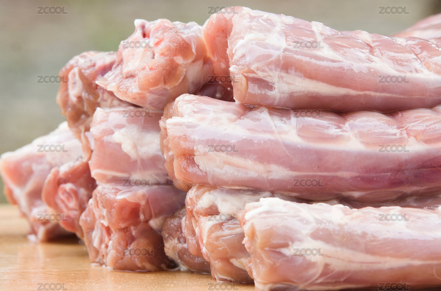 一排新鲜的猪肉