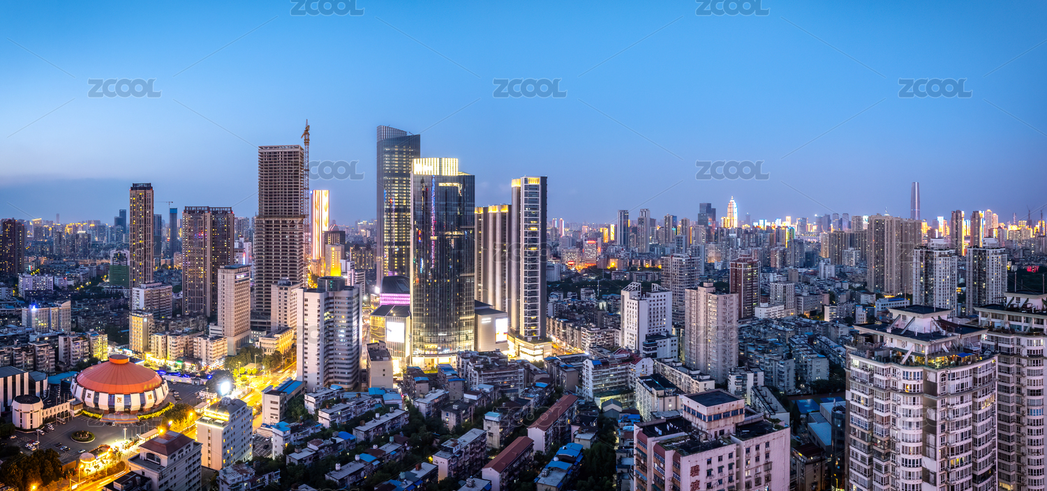 航拍,武汉风光,湖北省,汉口CBD,汉口金融中心,摩天大楼,城市夜景,都市风光,城市天际线,著名景点