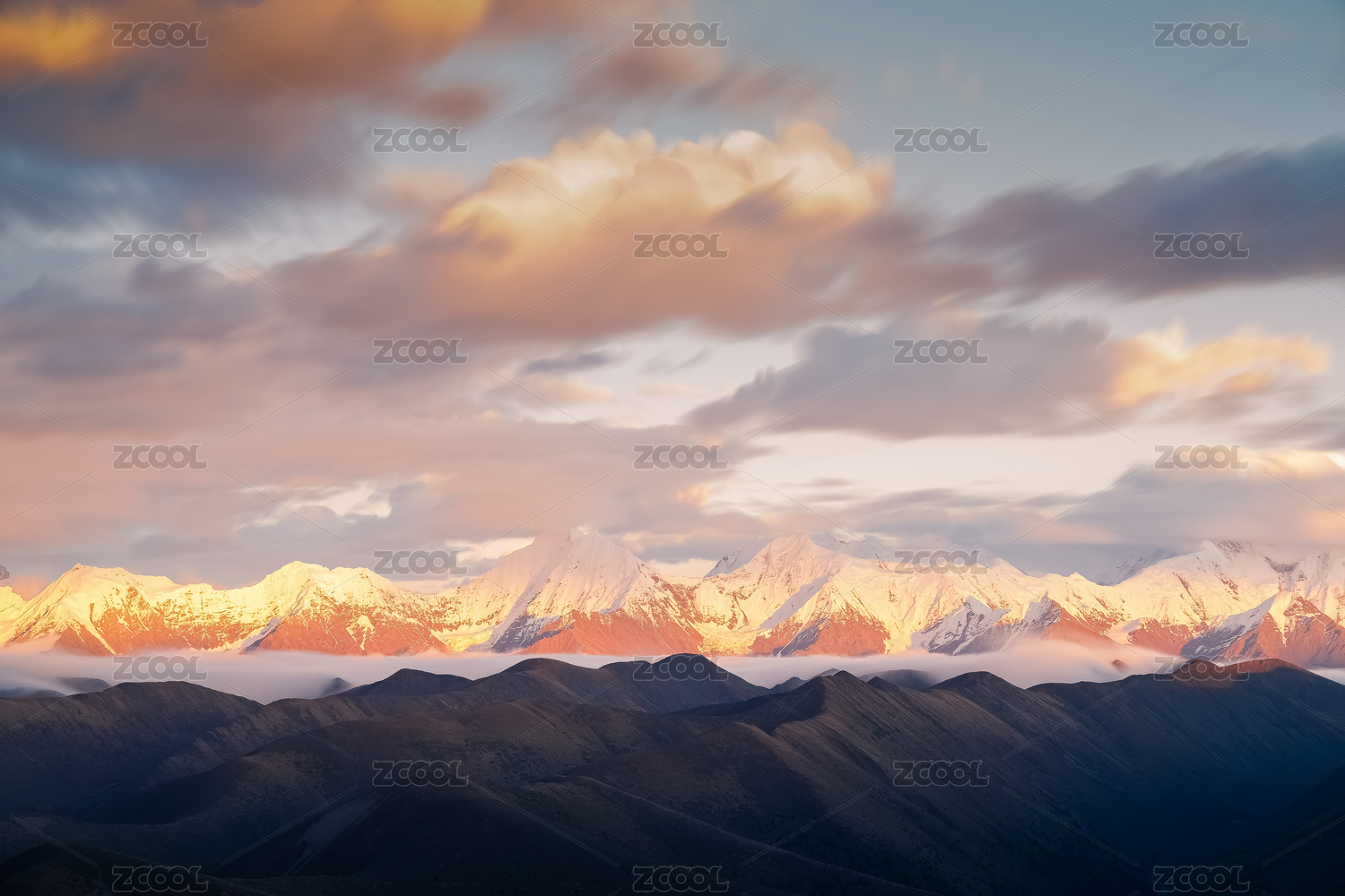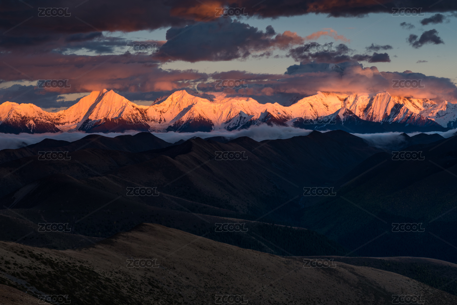 中国四川省甘孜居里寺垭口观贡嘎雅拉雪山风