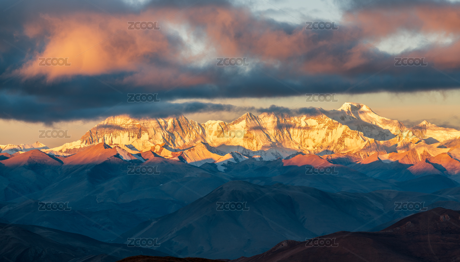 中国四川甘孜州川西居里寺垭口贡嘎雪山风光