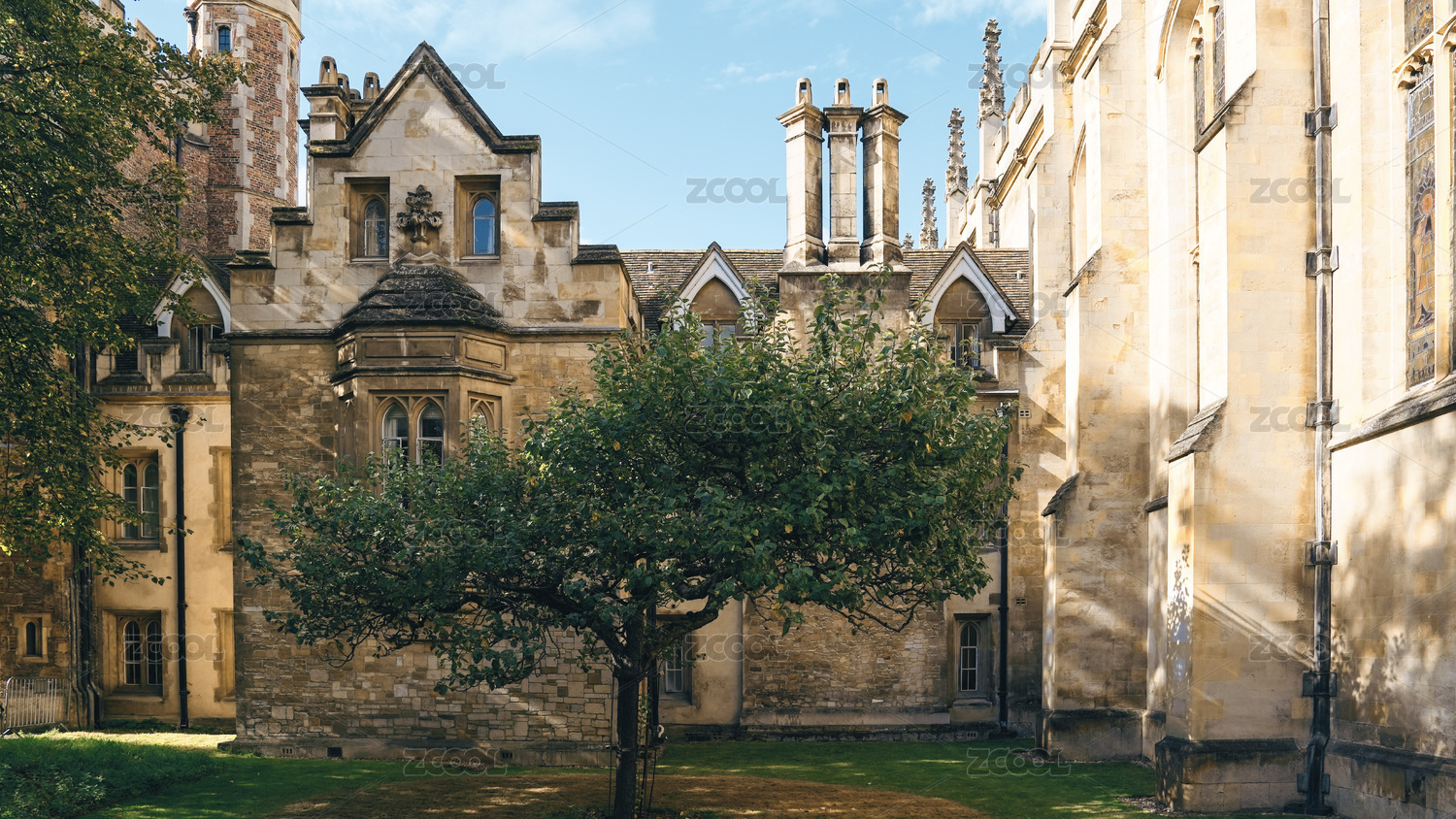 剑桥大学三一学院(Trinity College, Cambridge)大门右侧的绿草坪中间,长着一棵枝繁叶茂的苹果树,据说几百年前,这棵树的远祖结出的一个苹果落到牛顿头上,从而启发他发现了万有引力定律。