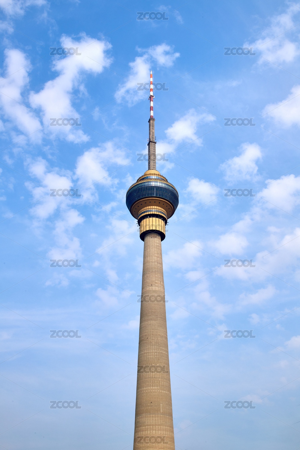 晴天下中央电视塔/蓝天下的电视塔地标建筑