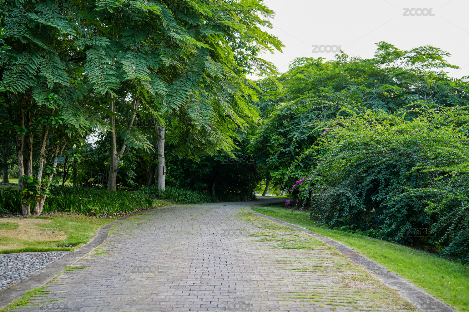 夏天的海浦东滨江森林公园林荫大道自然景观