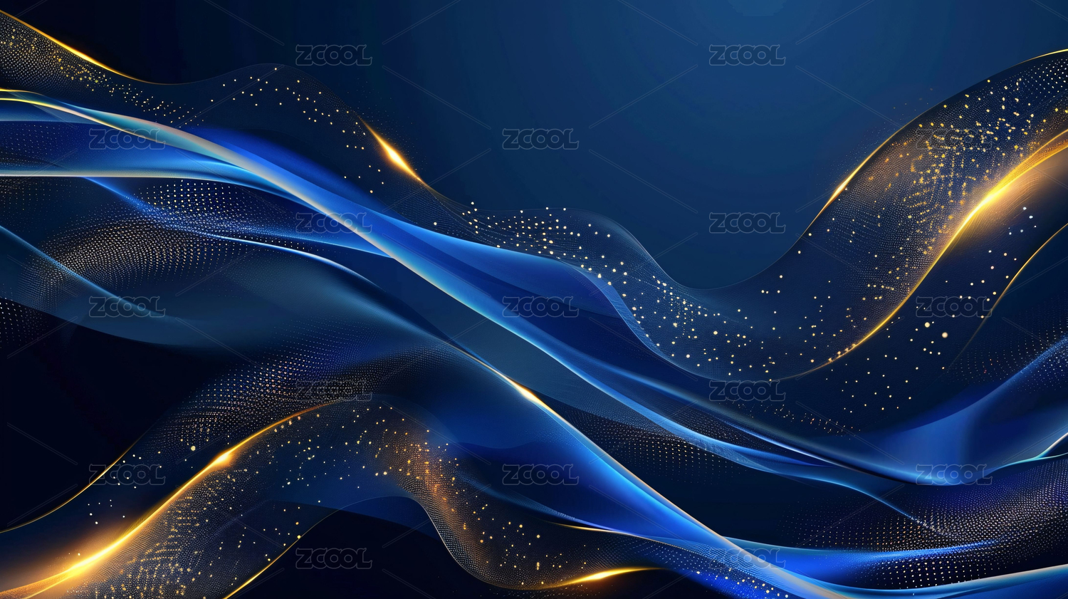 豪华蓝色金色抽象闪亮的波浪设计元素