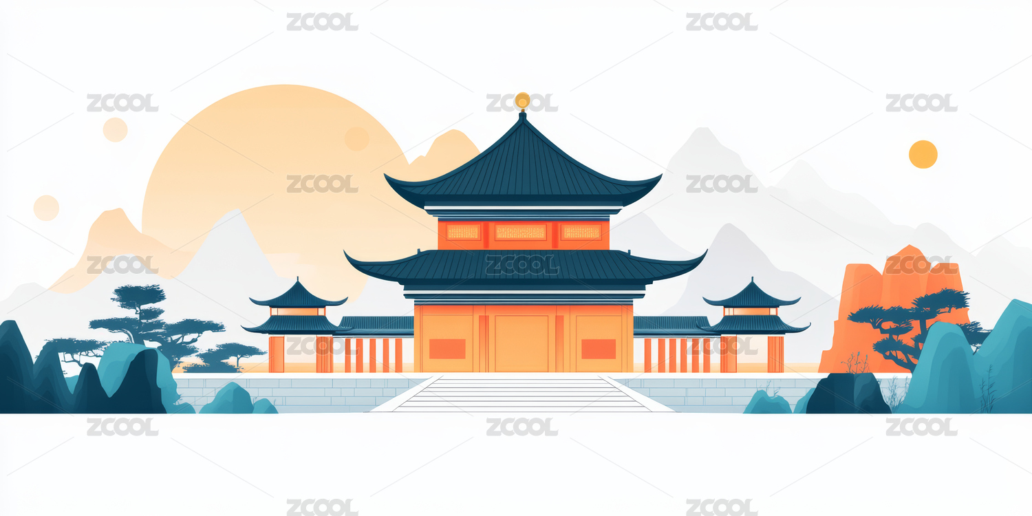 AIGC202404,旅游,旅行,城市,建筑,古风,插画,极简