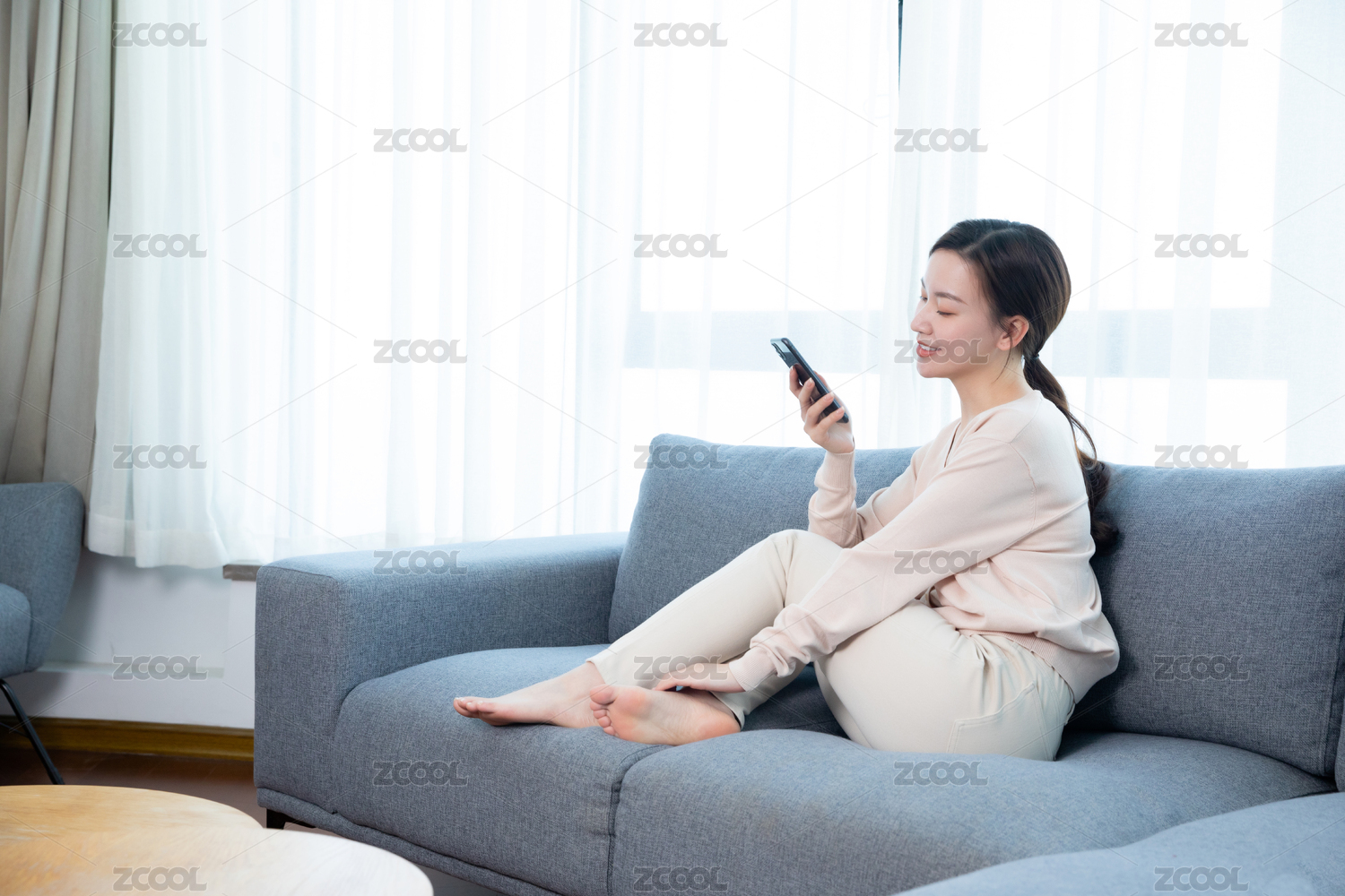 享乐,快乐,坐着,沙发,休闲服,看电视,一个人,女人,生活方式,室内