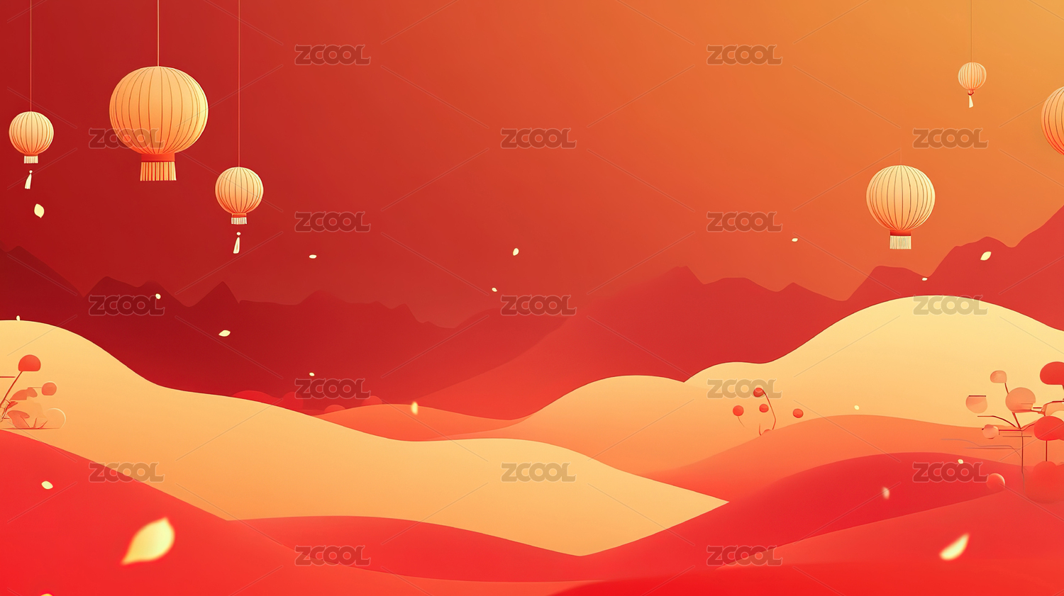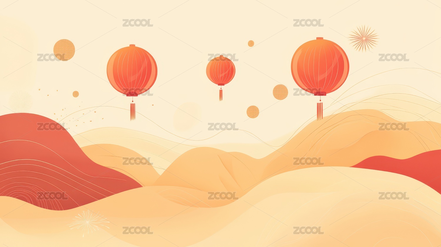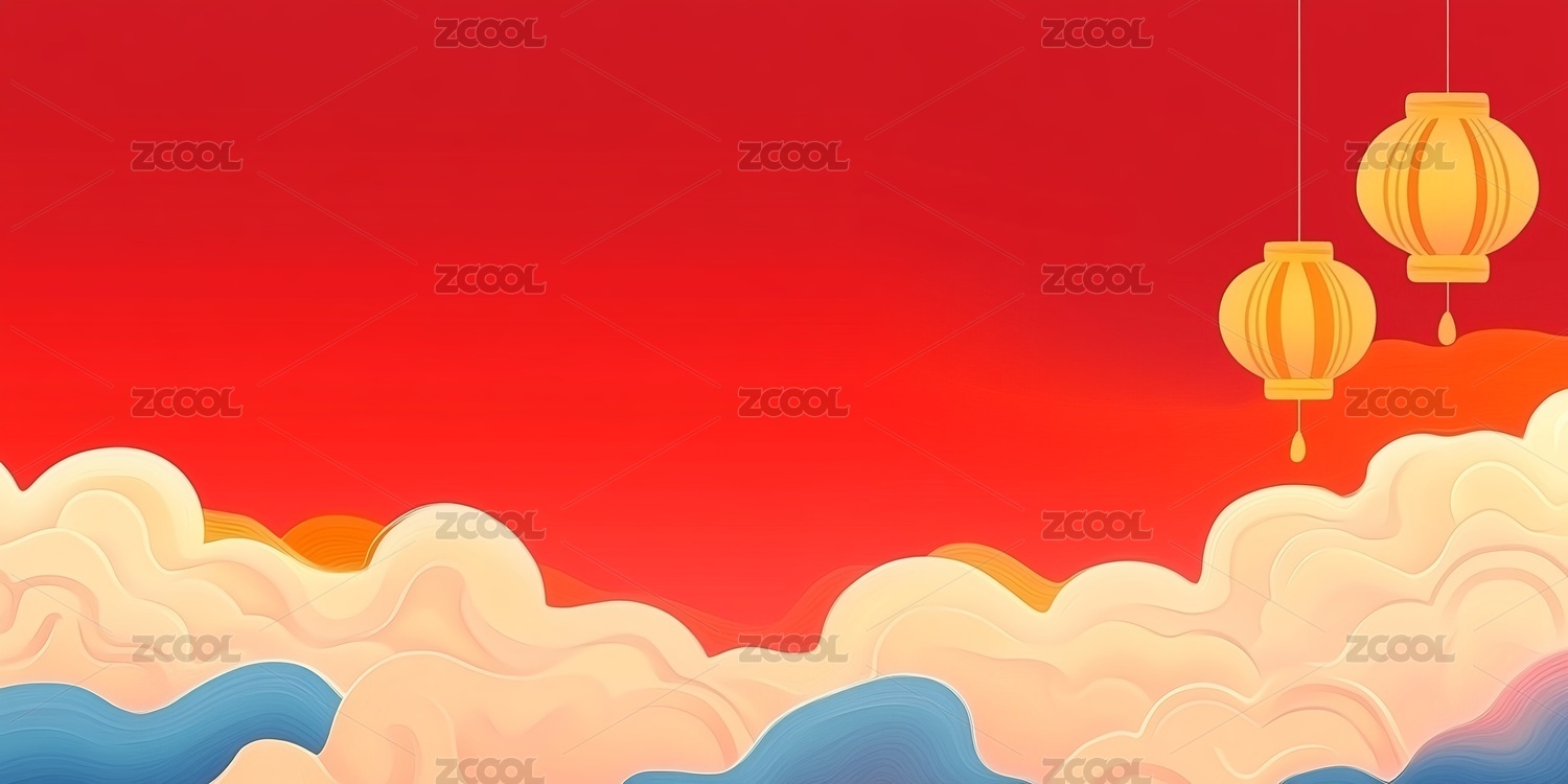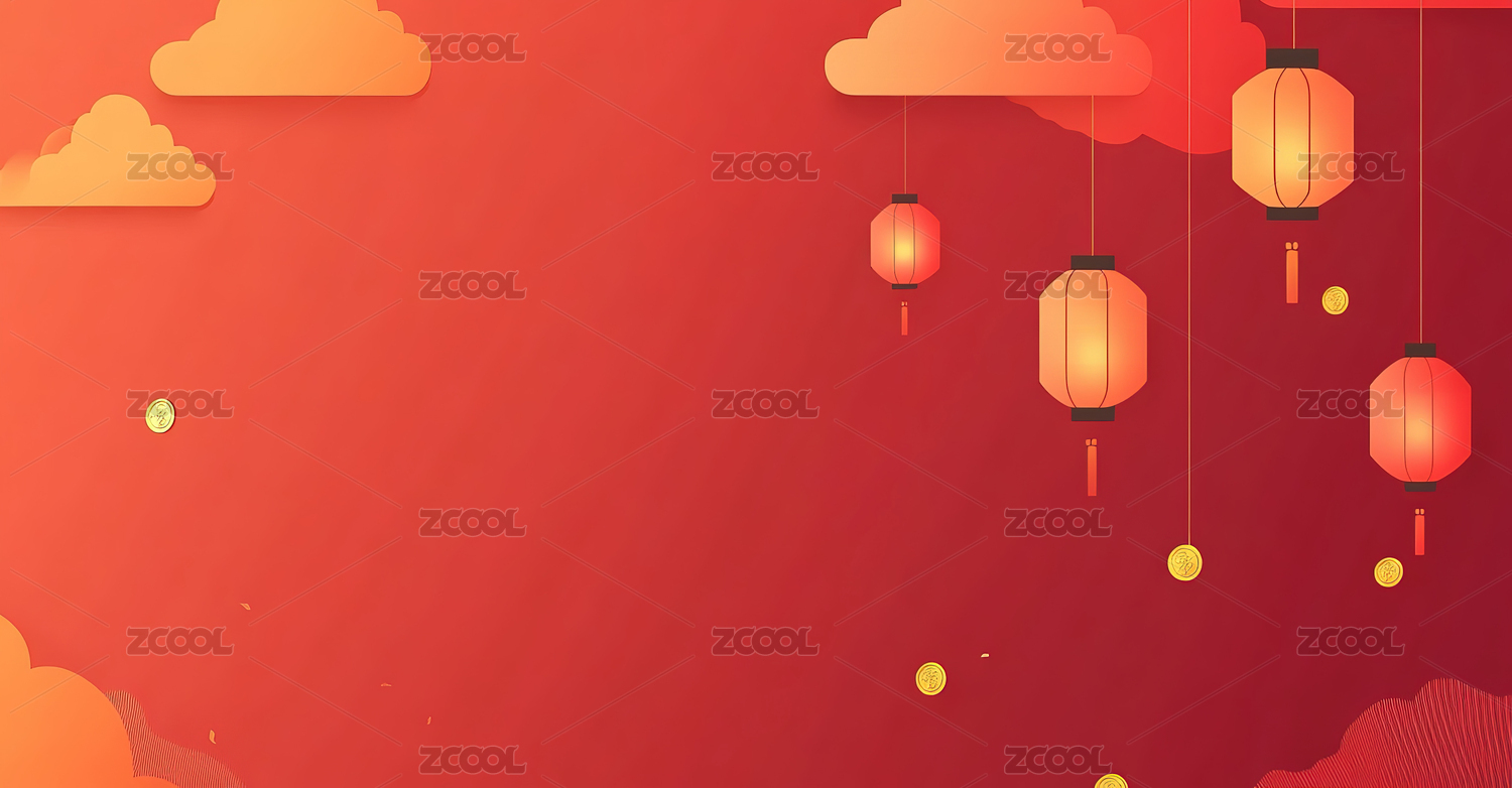 新年春节灯笼喜庆卡通中国风背景矢量插画