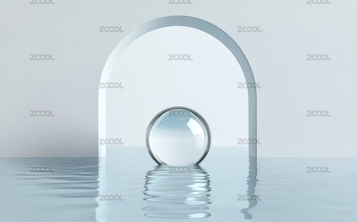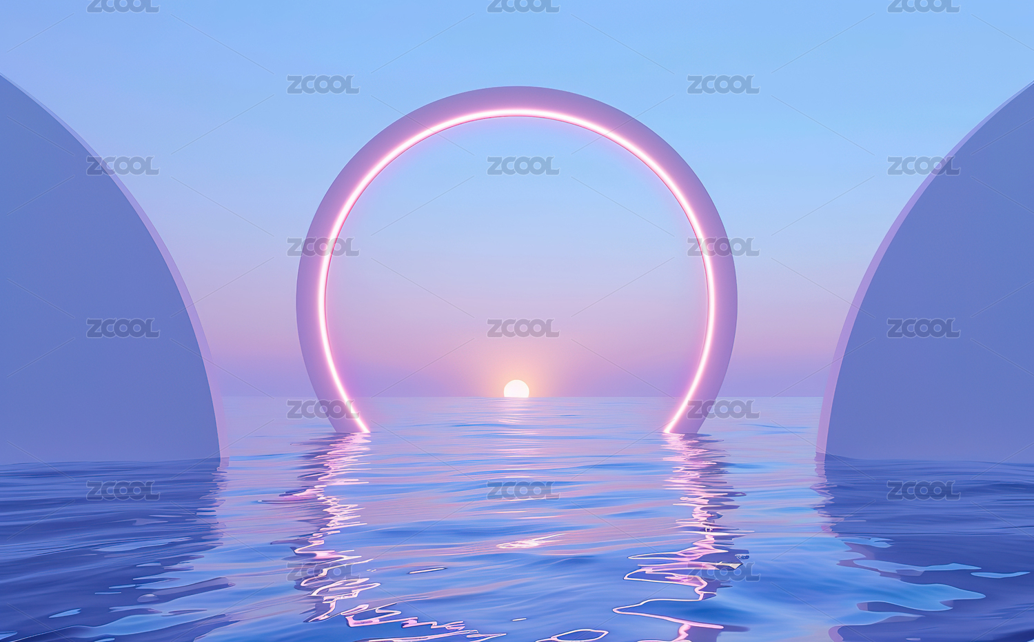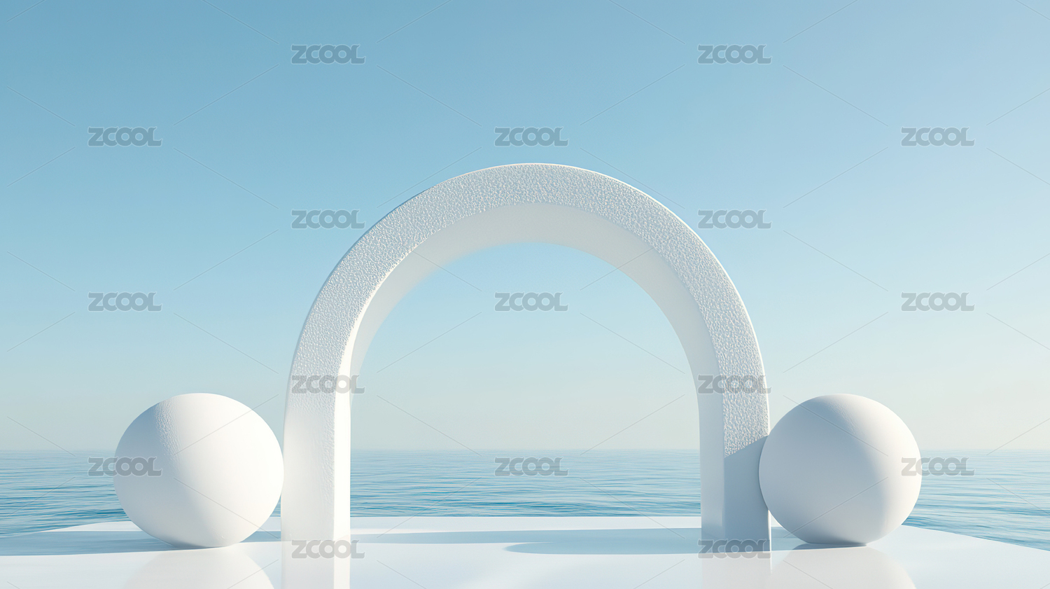 现代,极简,概念,圆弧,场景,水,山,户外,天空